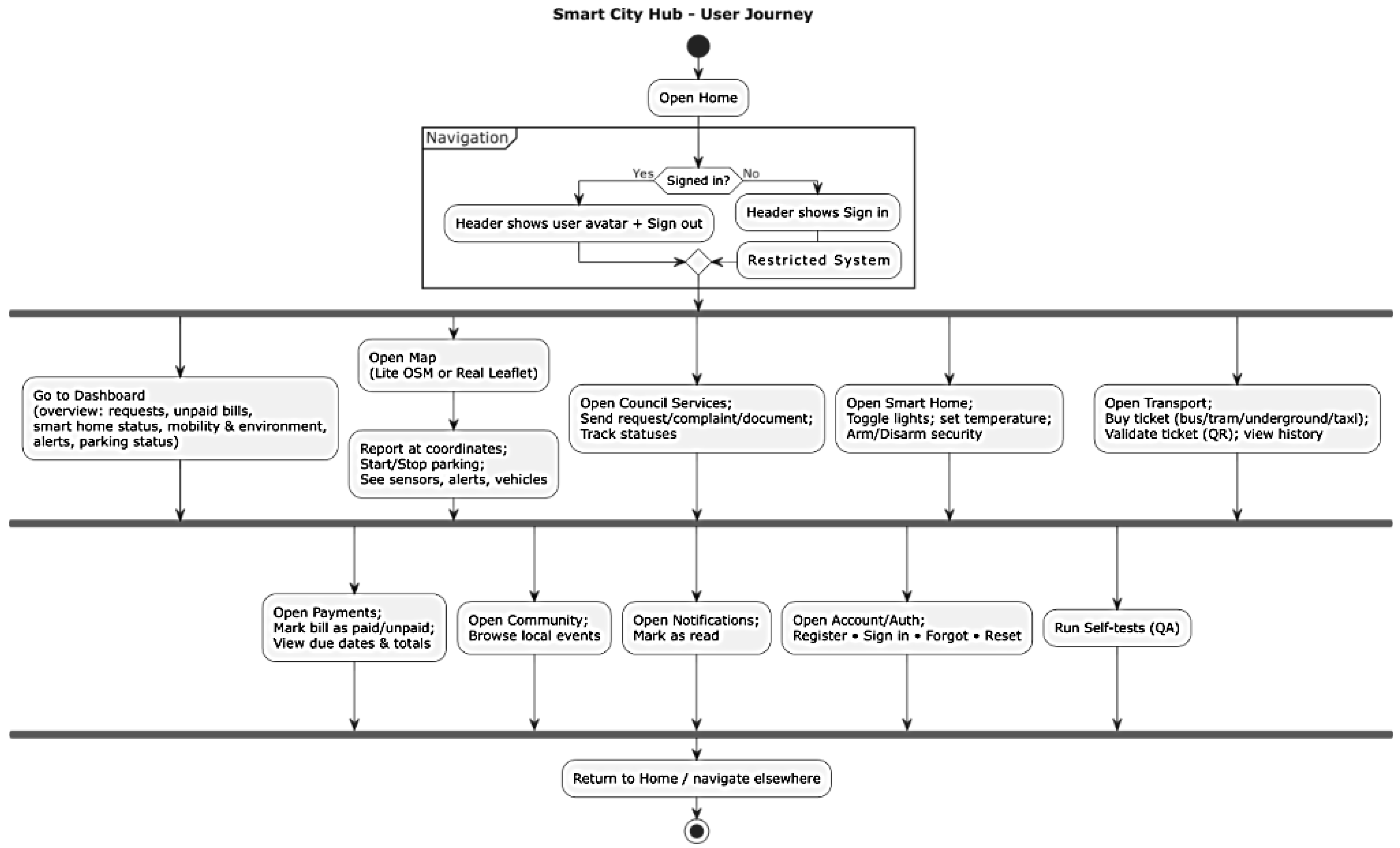 | [40] | From Data to Action: Exploring AI and IoT-driven Solutions for Smarter Cities | IoT, AI and ML. | Data-driven urban management system with three use cases: road safety, energy efficiency, and early detection of potholes, floods, and fires. It also includes a case study carried out in Aveiro. | The system demonstrates the generation of actionable insights for safety, efficiency, and sustainability in real cities. | Preprint focused solely on system description and case study. The paper does not provide quantitative city-level performance indicators. |