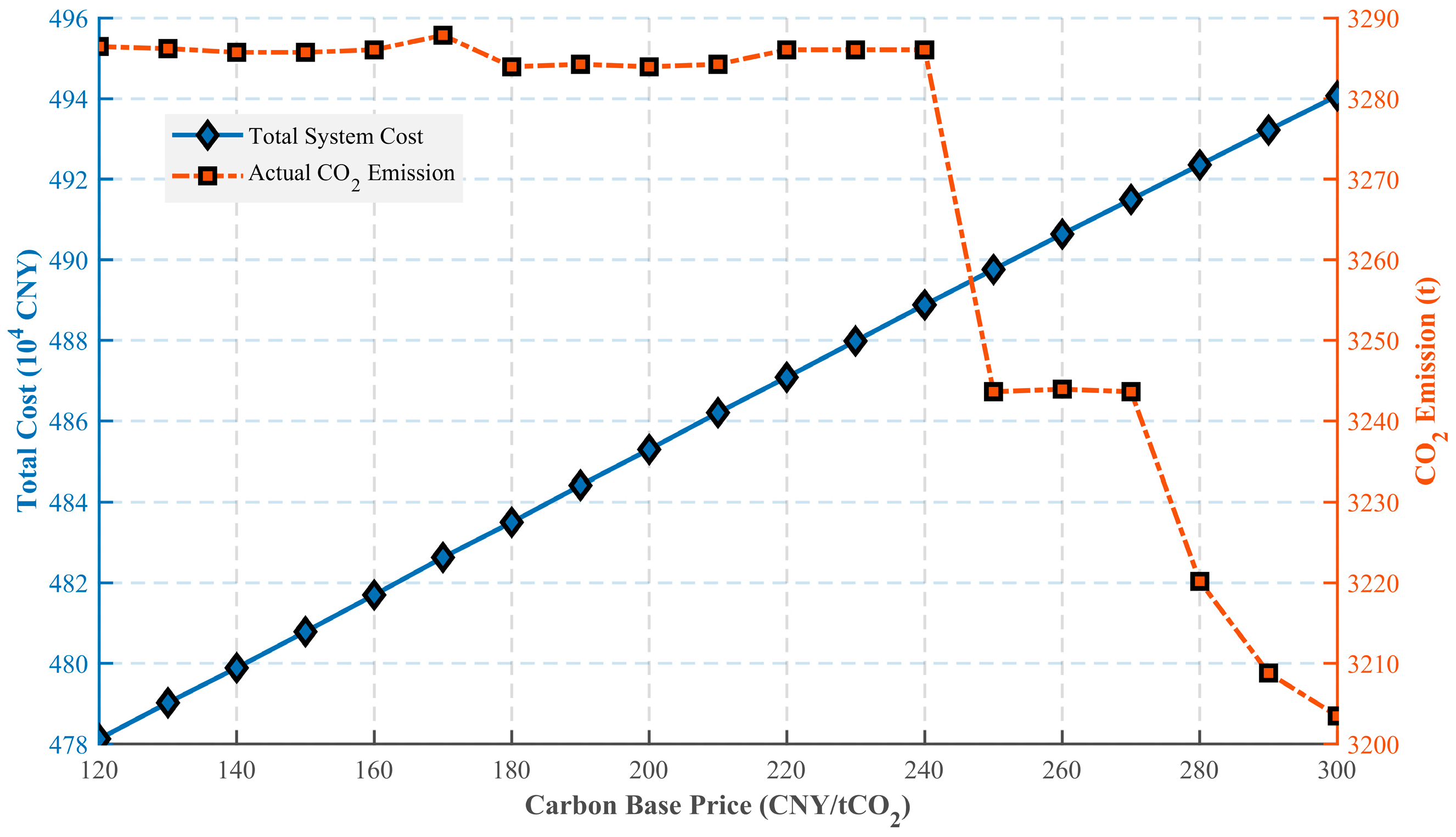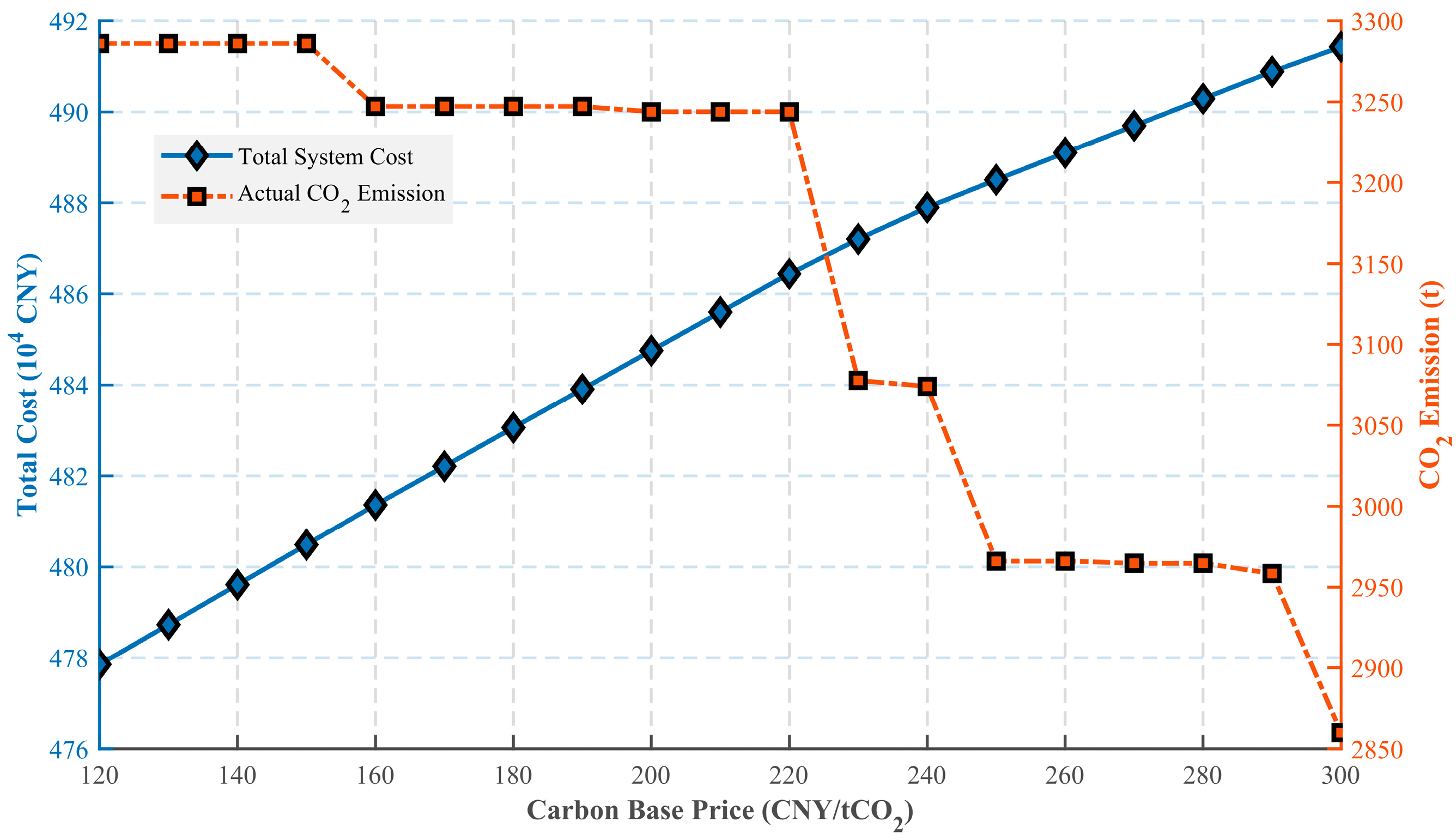 2 emissions. Finally, once the decarbonization potential reaches the physical limits of the coupled equipment (e.g., maximum CCS capture capacity), the emission reduction effect saturates, and the carbon emissions stabilize at a lower plateau. This indicates that appropriately setting a steeper price growth rate can achieve deep decarbonization even at a relatively lower base carbon price.