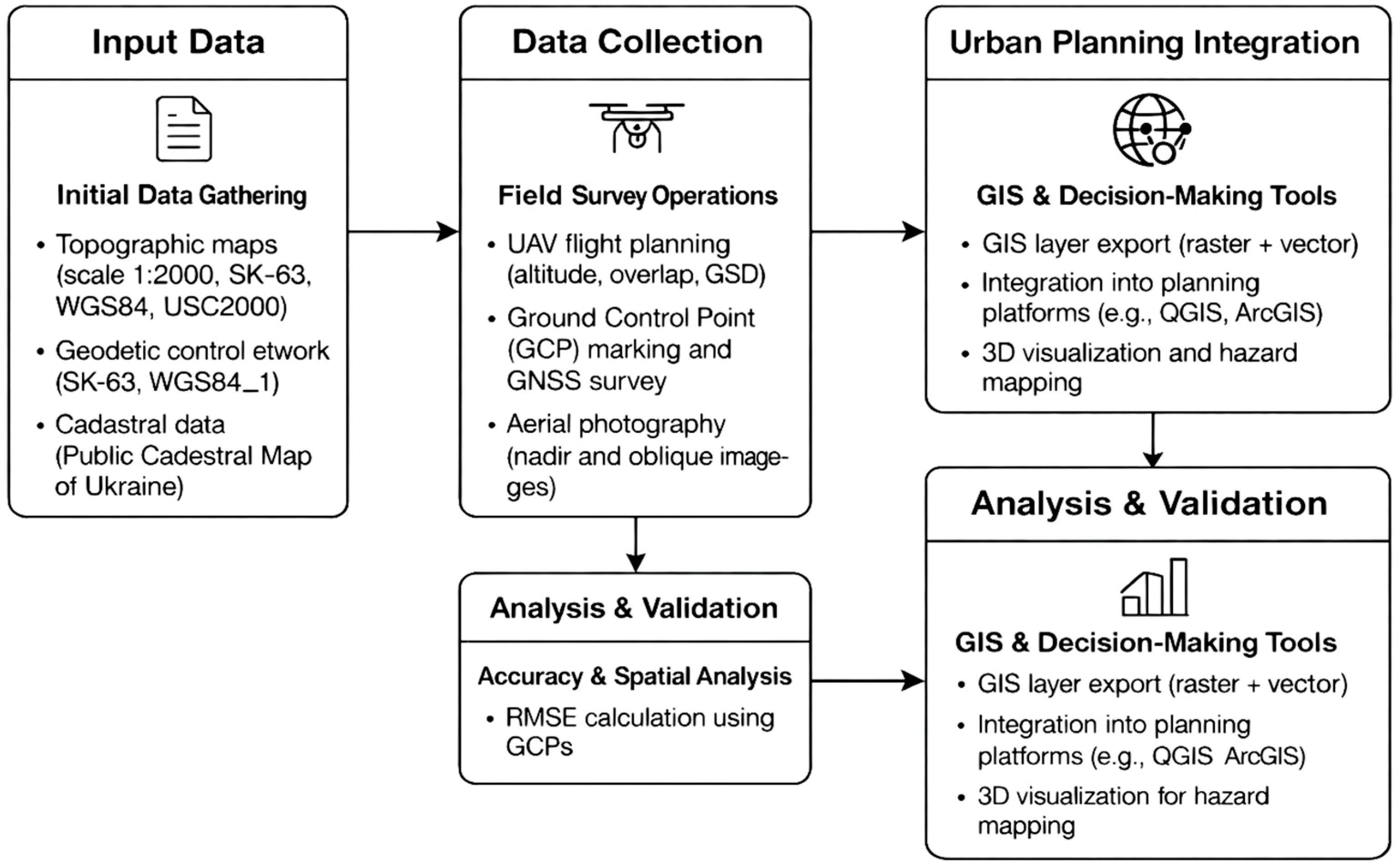 The workflow emphasizes reproducibility and compatibility with national geodetic reference systems, which is critical for integrating UAV-derived datasets into existing spatial planning frameworks.