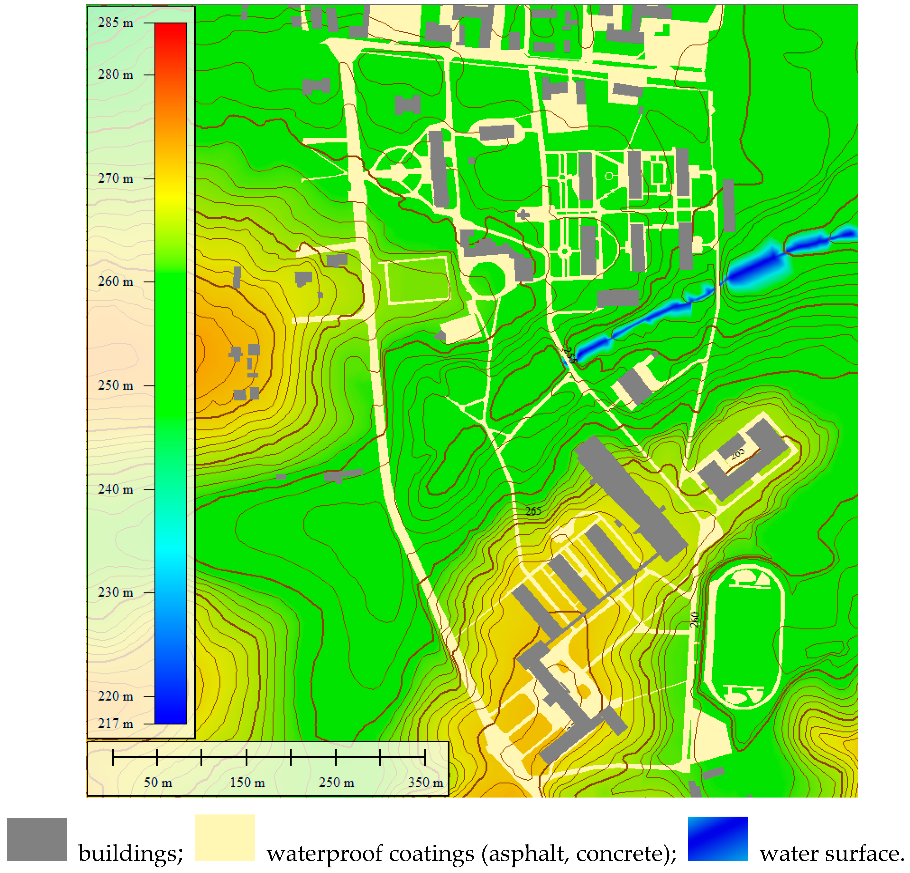 Future research will extend the proposed methodology toward full hydrological modeling by deriving slope, flow direction, flow accumulation, and runoff depth maps from the validated DEM and by integrating precipitation data and urban drainage networks. Comparative analyses with satellite-based and LiDAR-derived DEMs are also planned to further assess the advantages and limitations of UAV-based terrain modeling for urban flood risk management and sustainable land-use planning.