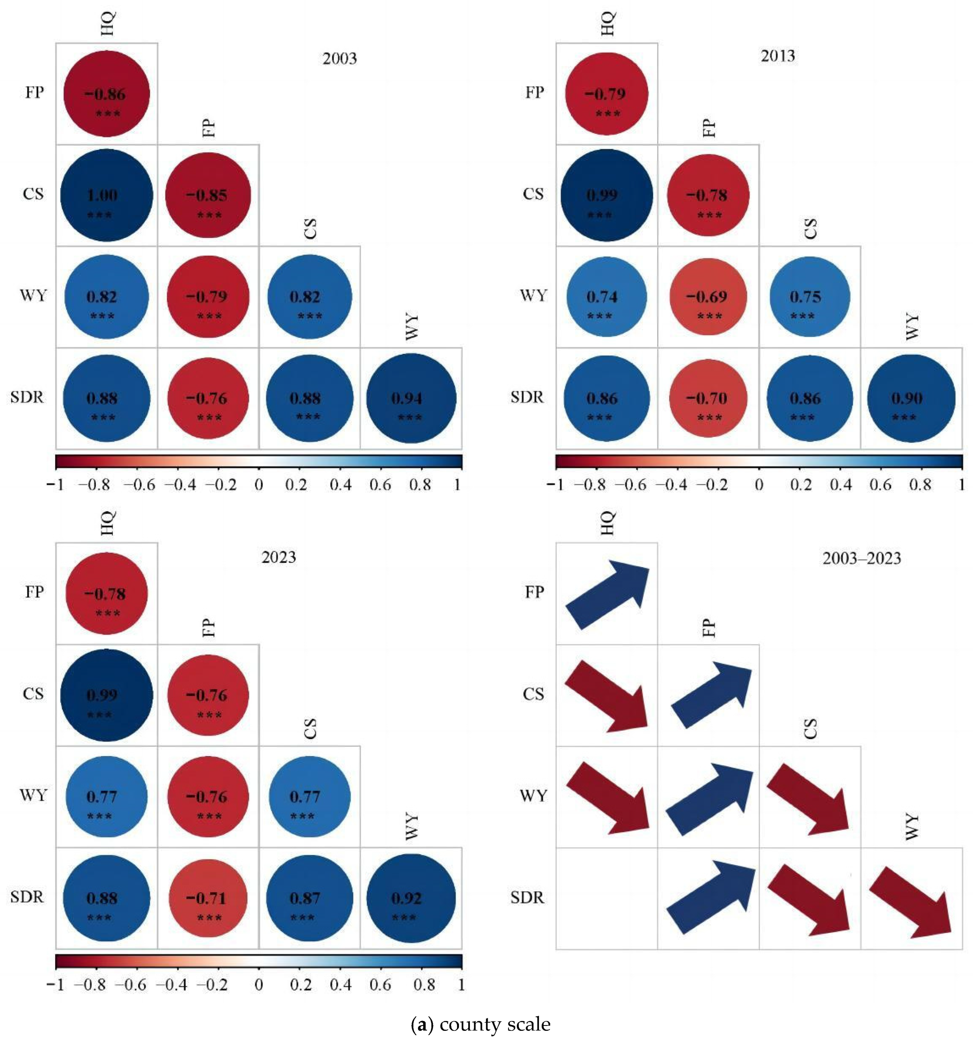 - Xu, T.; Tian, G.; Lin, T.; Li, W.; Liu, C. Multiscale analysis of ecosystem service interactions and driving factors in the Loess Plateau: Implications for ecological management. J. Clean. Prod. 2025, 495, 145074. [Google Scholar] [CrossRef]