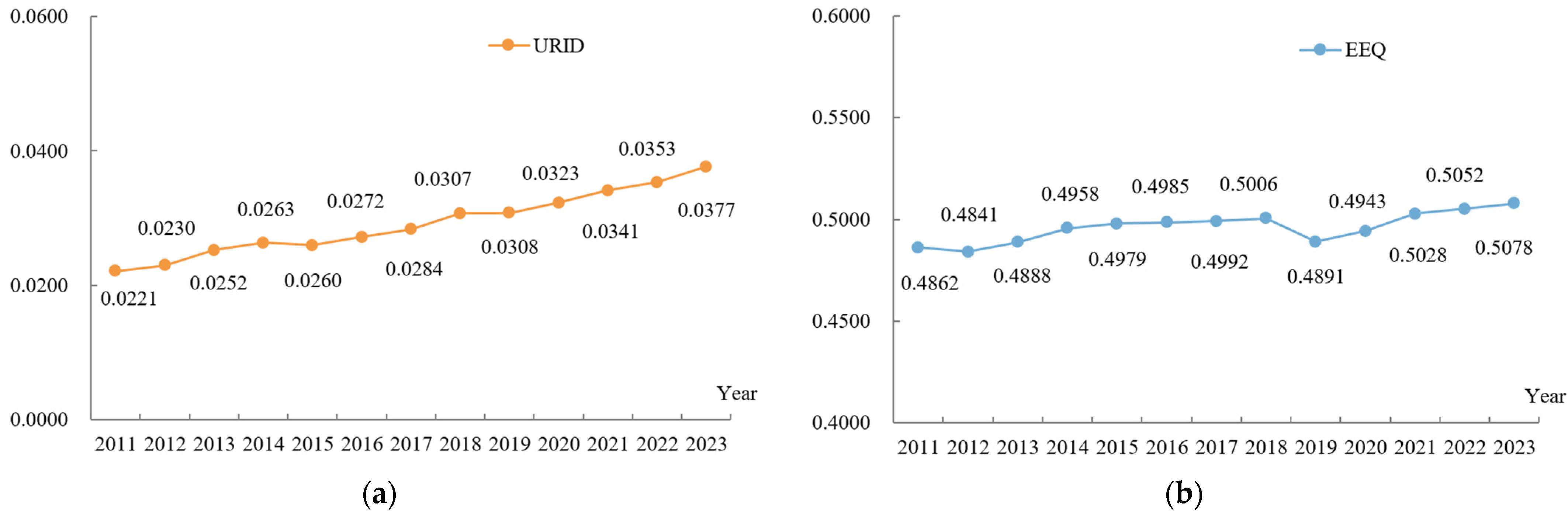 4.1. Spatio-Temporal Pattern Characteristics of URID and EEQ