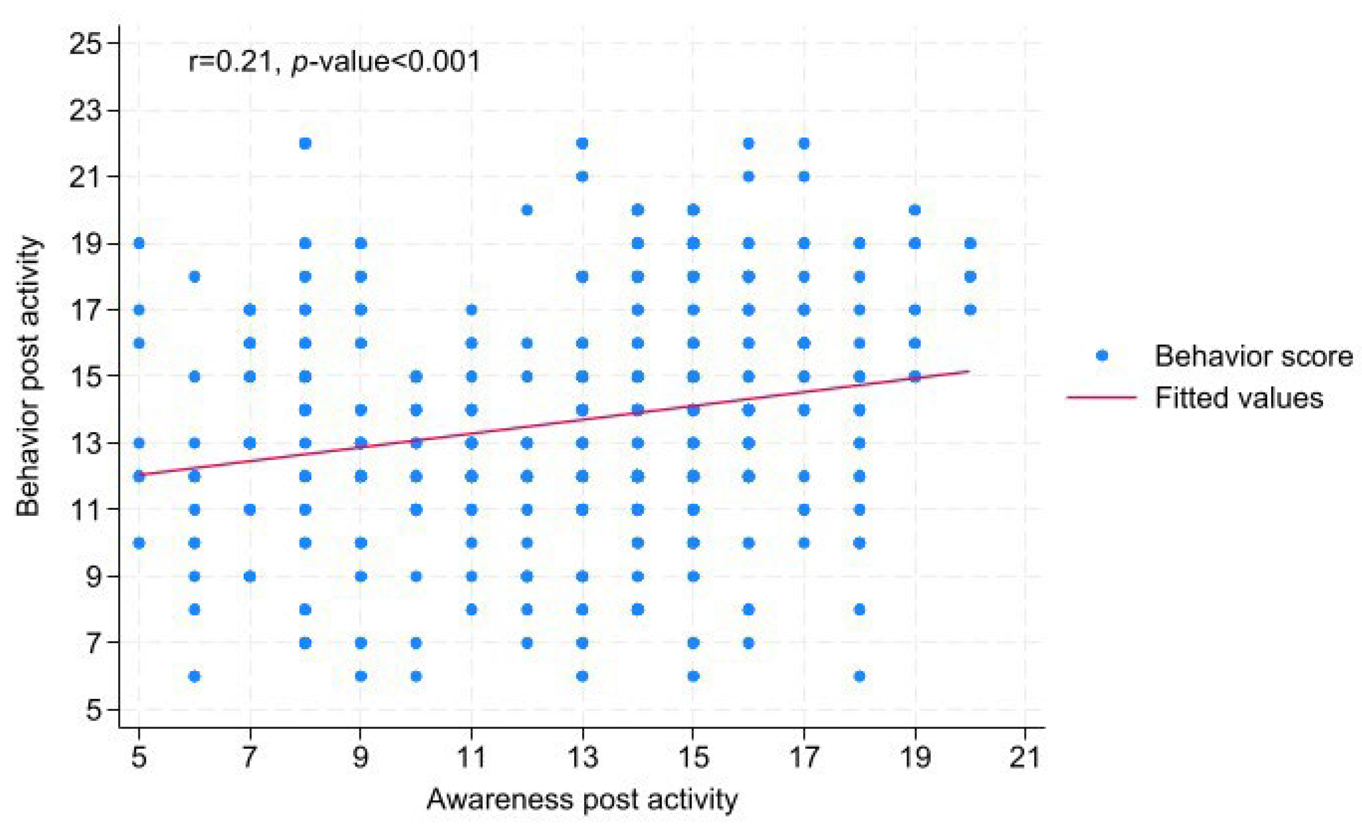 | A2 (Training workshop) | 73 | 12.57 ± 2.97 | 12.70 ± 4.05 | 2.32 (1.59–3.04) | <0.001 |