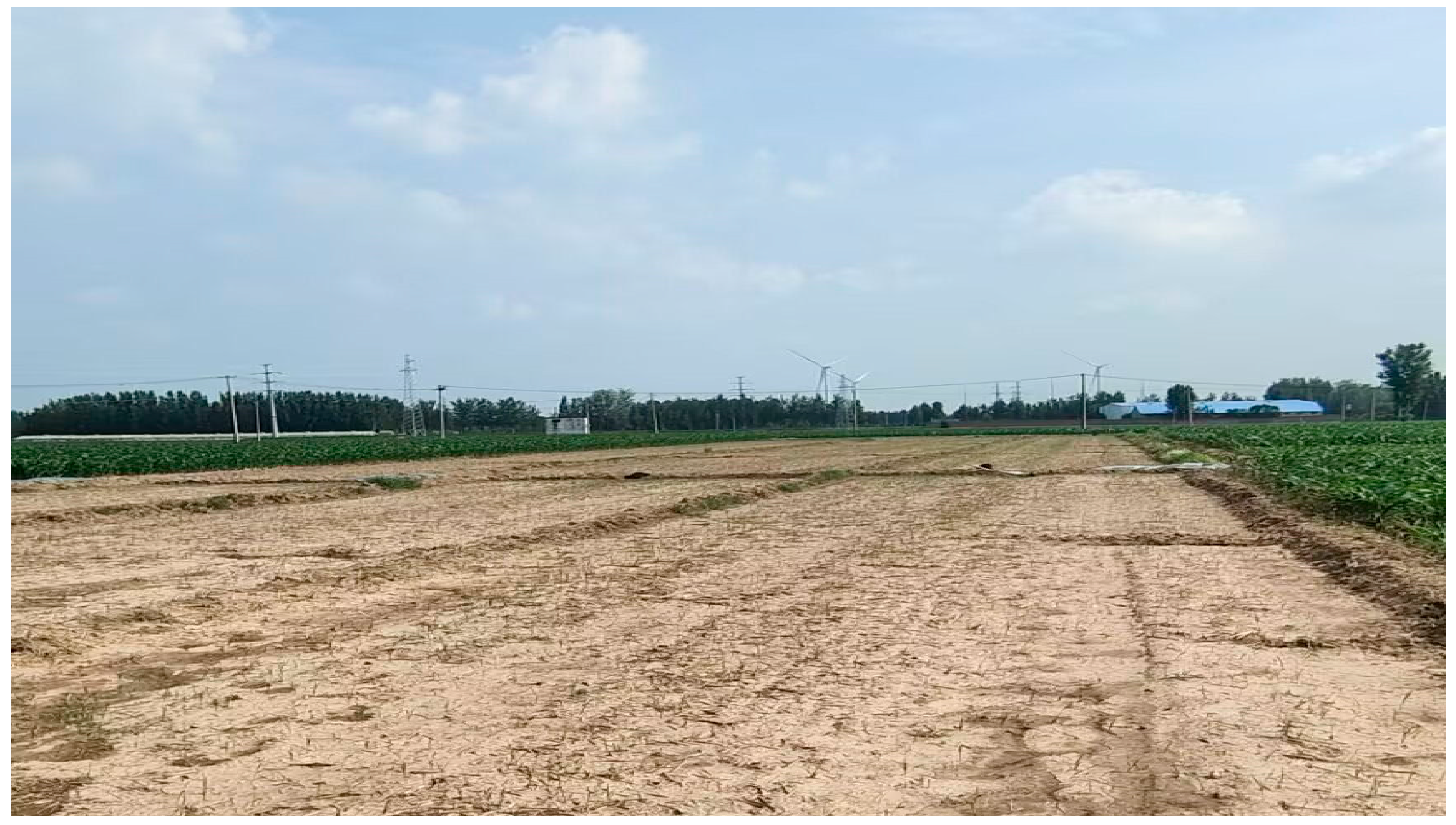 Table 1). For the wheat–corn cropping system, the wheat is planted generally around 15 October each year and harvested in early June in the next year, and corn is planted immediately. For the wheat–celery cropping system, the wheat is also planted around 15 October each year, and harvested in early June of the next year, and the celery is planted in early August. For the wheat–Chinese cabbage cropping system, the wheat is planted and harvested in the same period as the wheat–celery cropping system. Chinese cabbage planting generally starts around 10 August, with harvest beginning around 20 November.