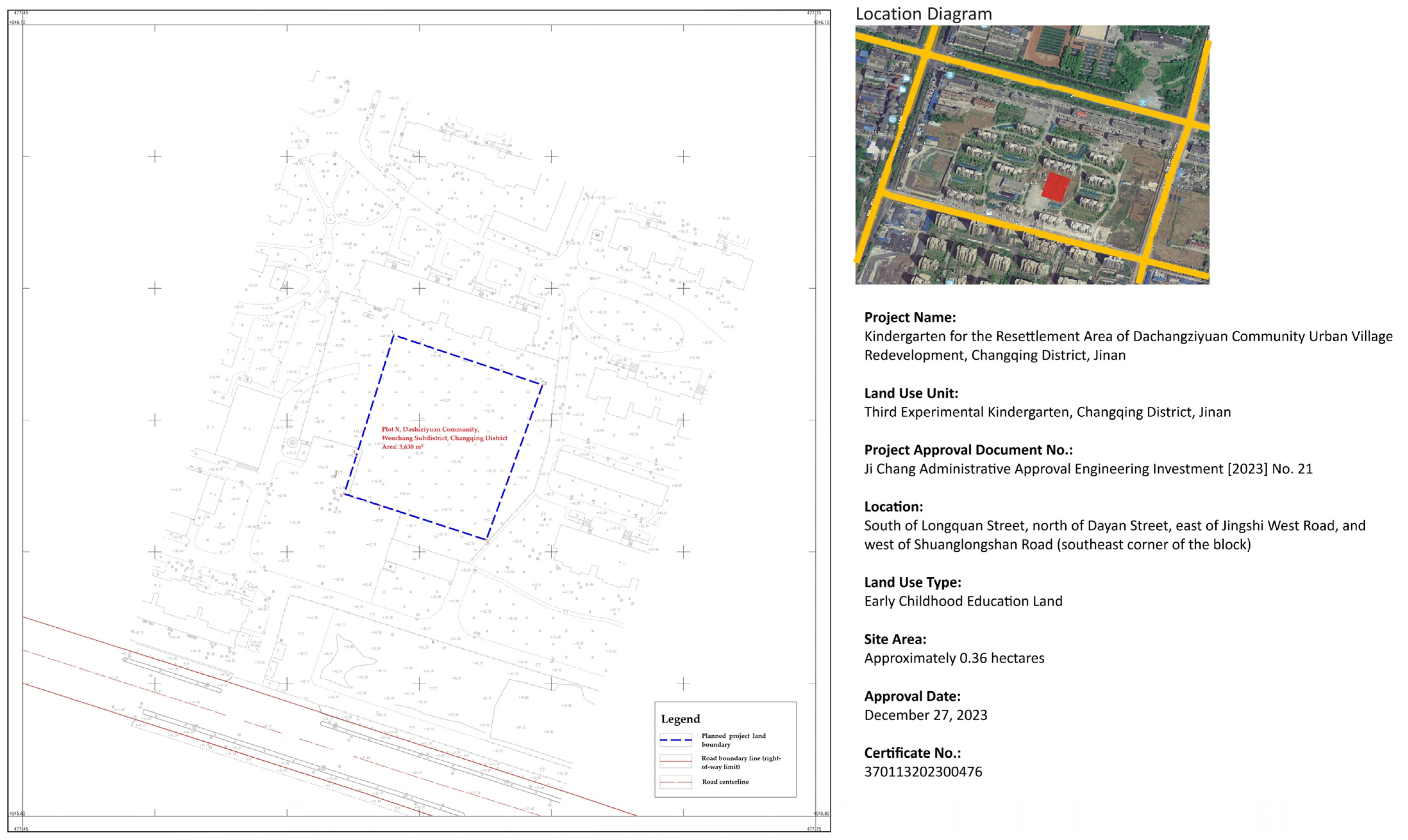 Location and layout of the Dashiziyuan Community kindergarten plot, Changqing District, Jinan.