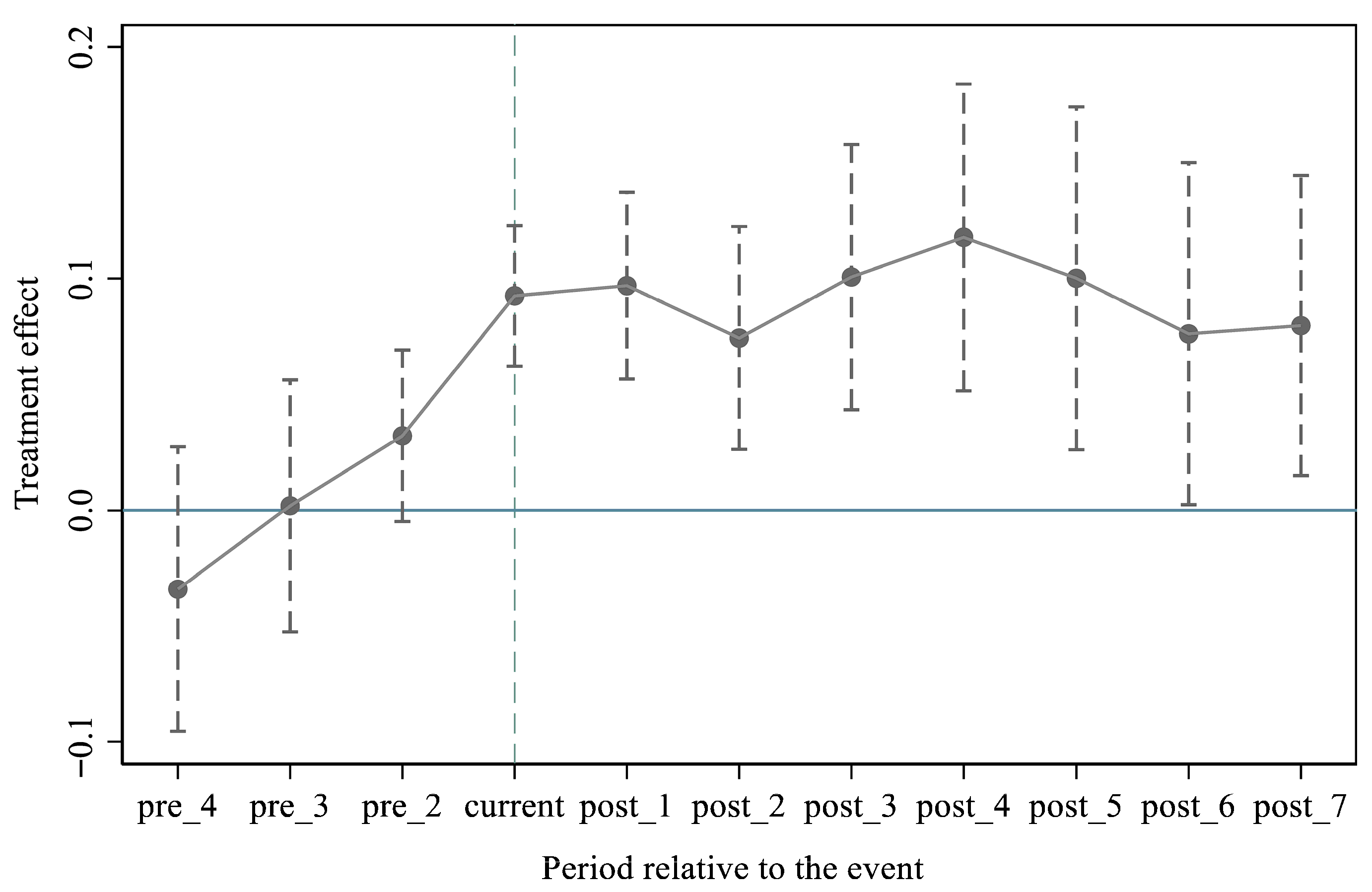 p = 0.0126), which does not accept the null hypothesis at the 5% level and indicates that the post-policy treatment effects are jointly significant. Therefore, these results are robust.