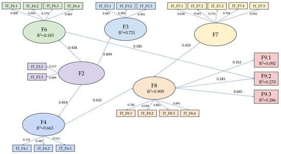 In Model 2, all regression coefficients were found to be significant except F3–F6. Therefore, this relationship was removed in Model 3, achieving a minor improvement in the model’s fit.