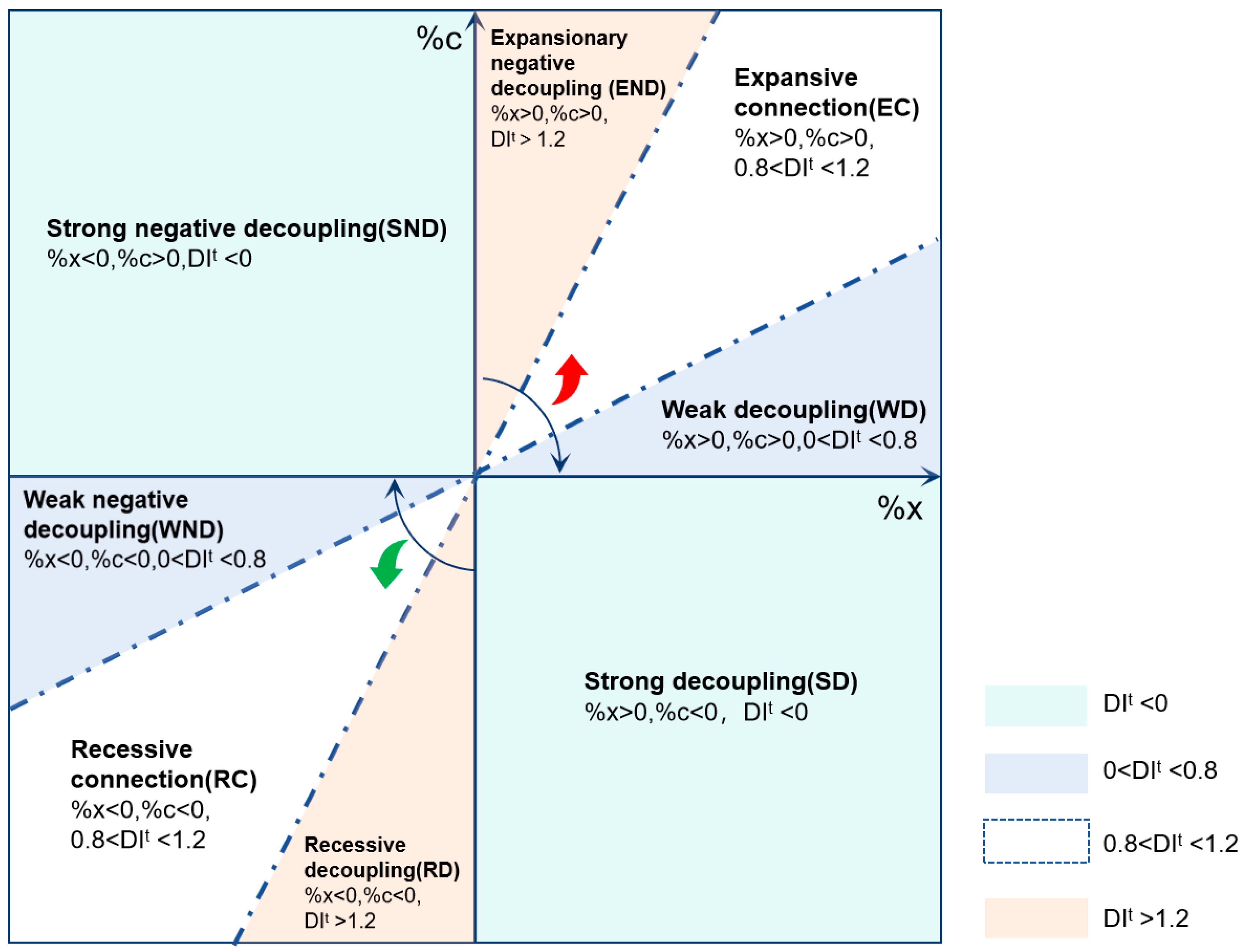 Decoupling Theory, originating from environmental economics, examines the relationship between economic growth and environmental pressure. Tapio’s (2005) elasticity-based framework has been widely applied to assess whether industries can grow while reducing emissions [