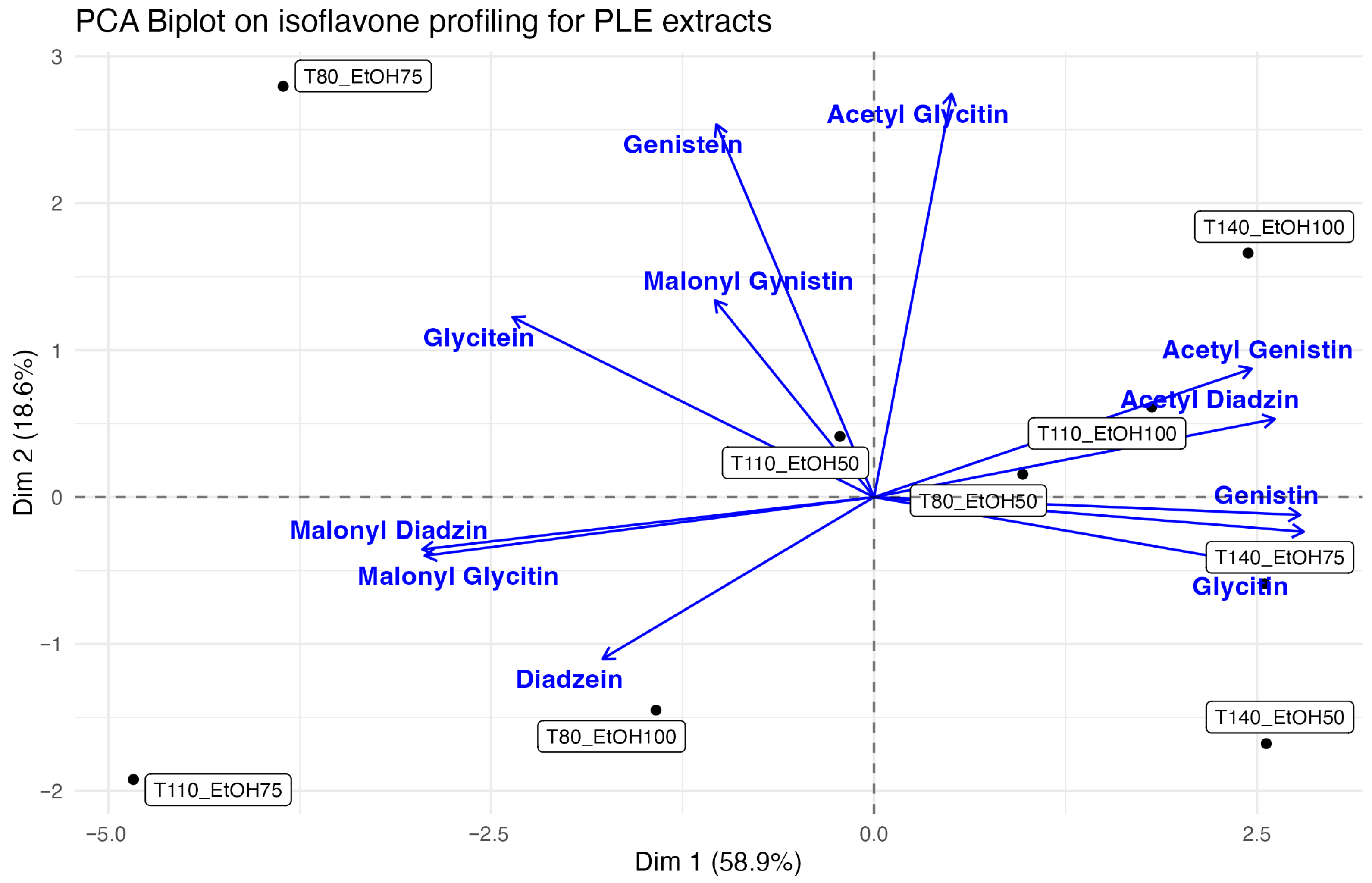 3.3. Identification and Quantification of the Main Isoflavones from PLE Extracts
