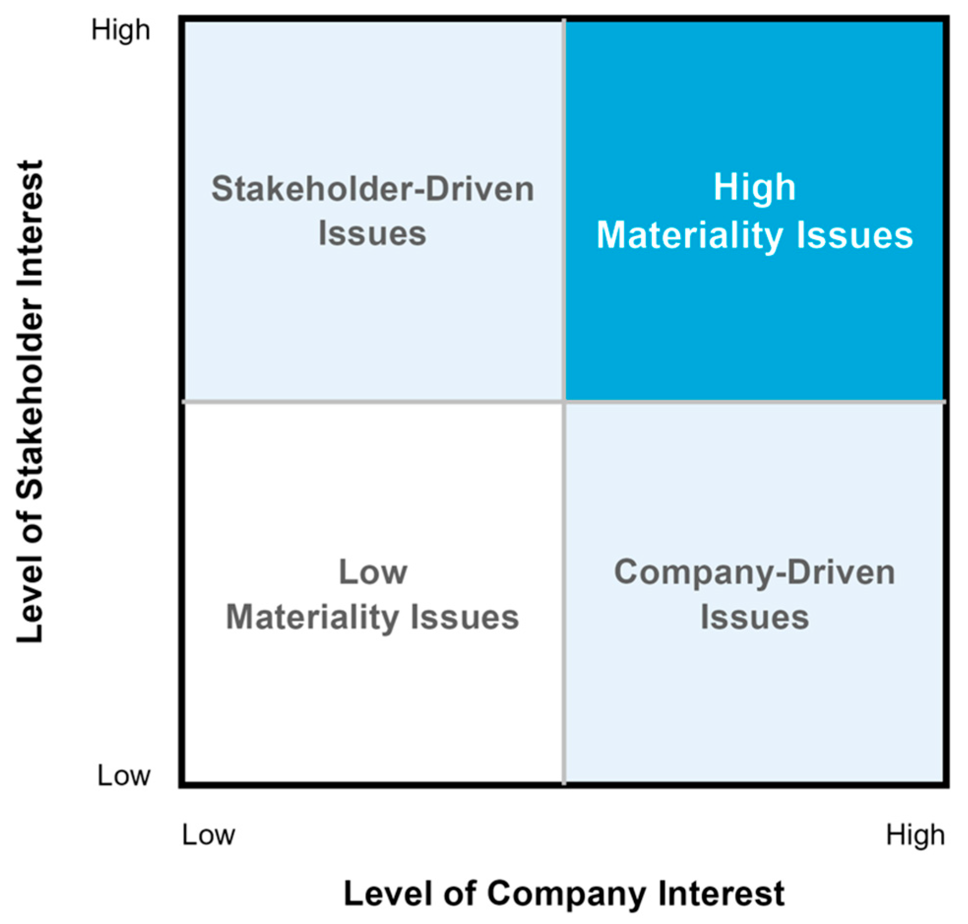 | Very High | 80–100% | The majority of companies (or stakeholders) selected as key issues |