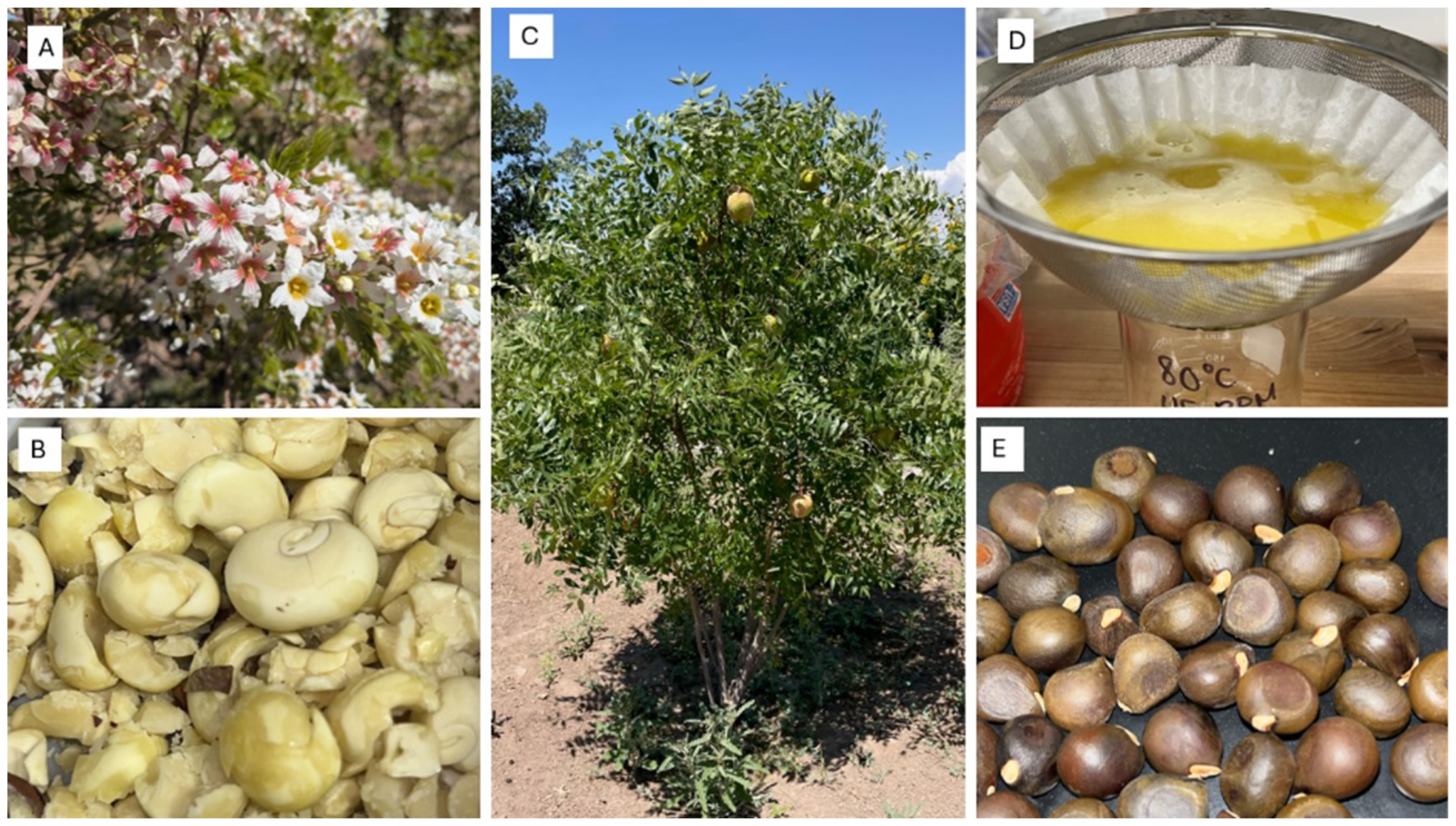 - Anderson, J.; Vitale, P.; Sapkota, G.; Delgado, E.; Holguin, O.; Roberts, E. Guide A-103 Exploring Yellowhorn: A Drought-Tolerant Crop for New Mexico’s Future. Available online: https://pubs.nmsu.edu/_a/A103.pdf (accessed on 15 February 2026).