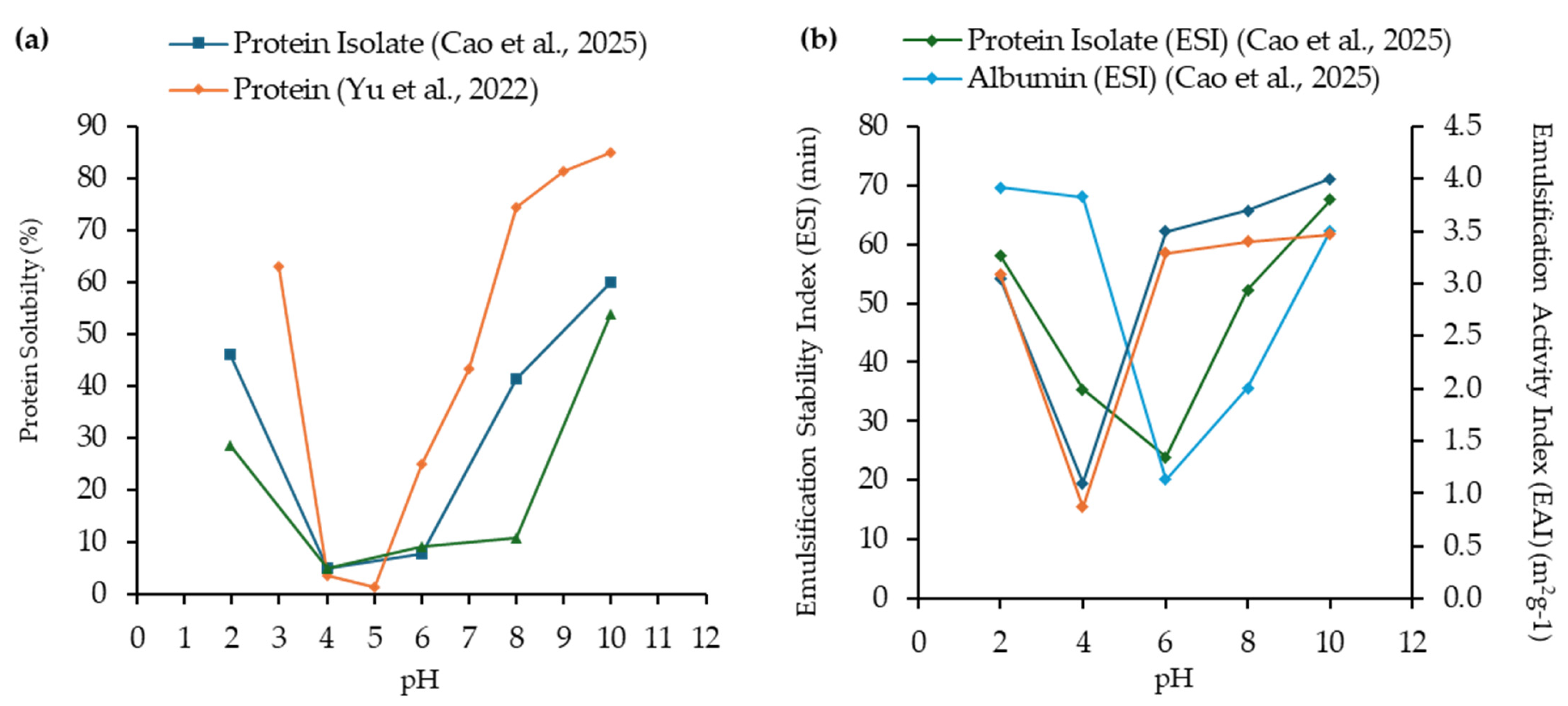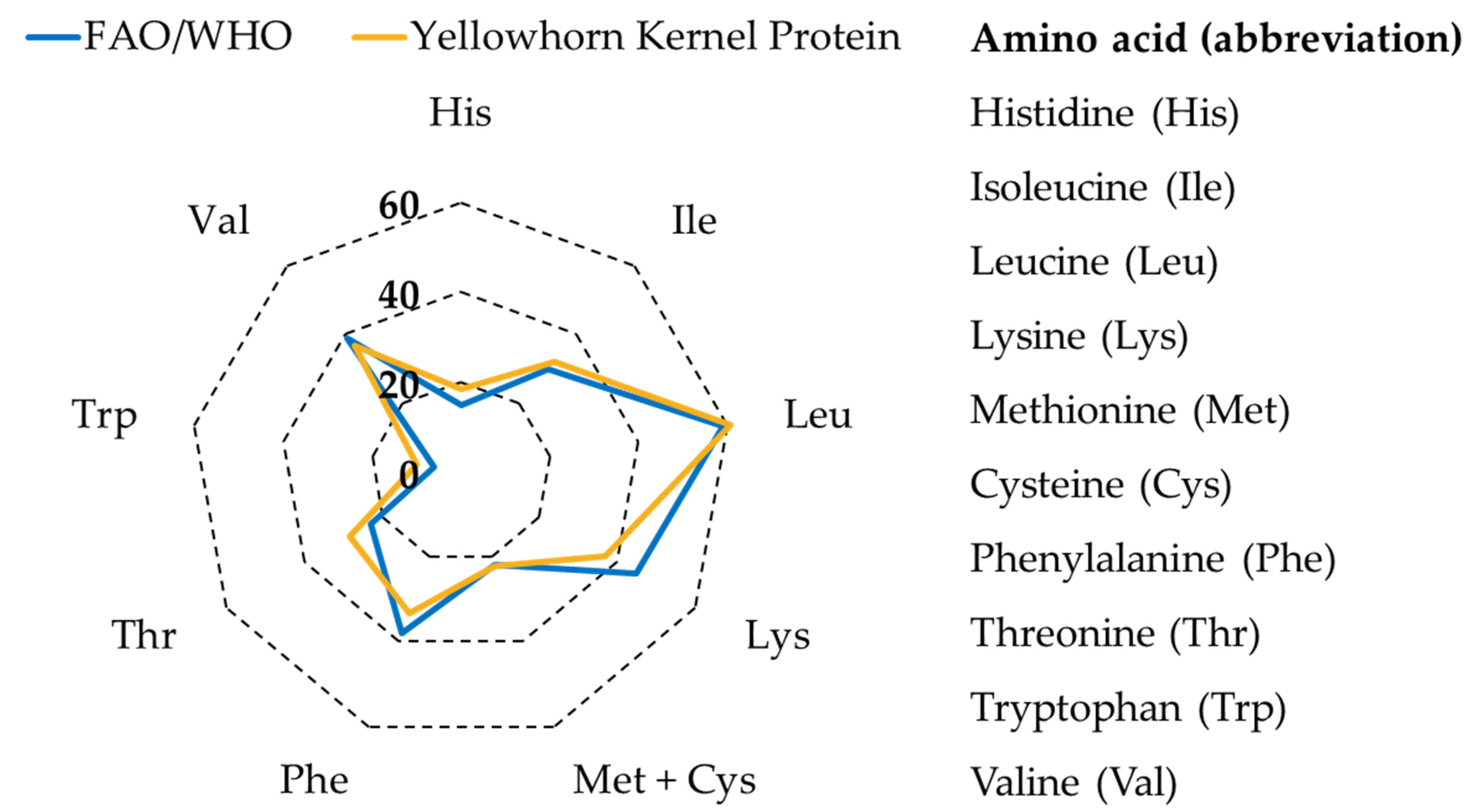 - Cao, J.; Shi, T.; Wang, Y.; Wang, J.; Yu, P.; Cao, F.; Su, E. Unveiling Yellowhorn (Xanthoceras sorbifolia Bunge) Kernels as a Protein Source: Physicochemical and Functional Properties of Protein Isolate and Its Major Protein Fraction. J. Food Meas. Charact. 2025, 19, 7514–7529. [Google Scholar] [CrossRef]