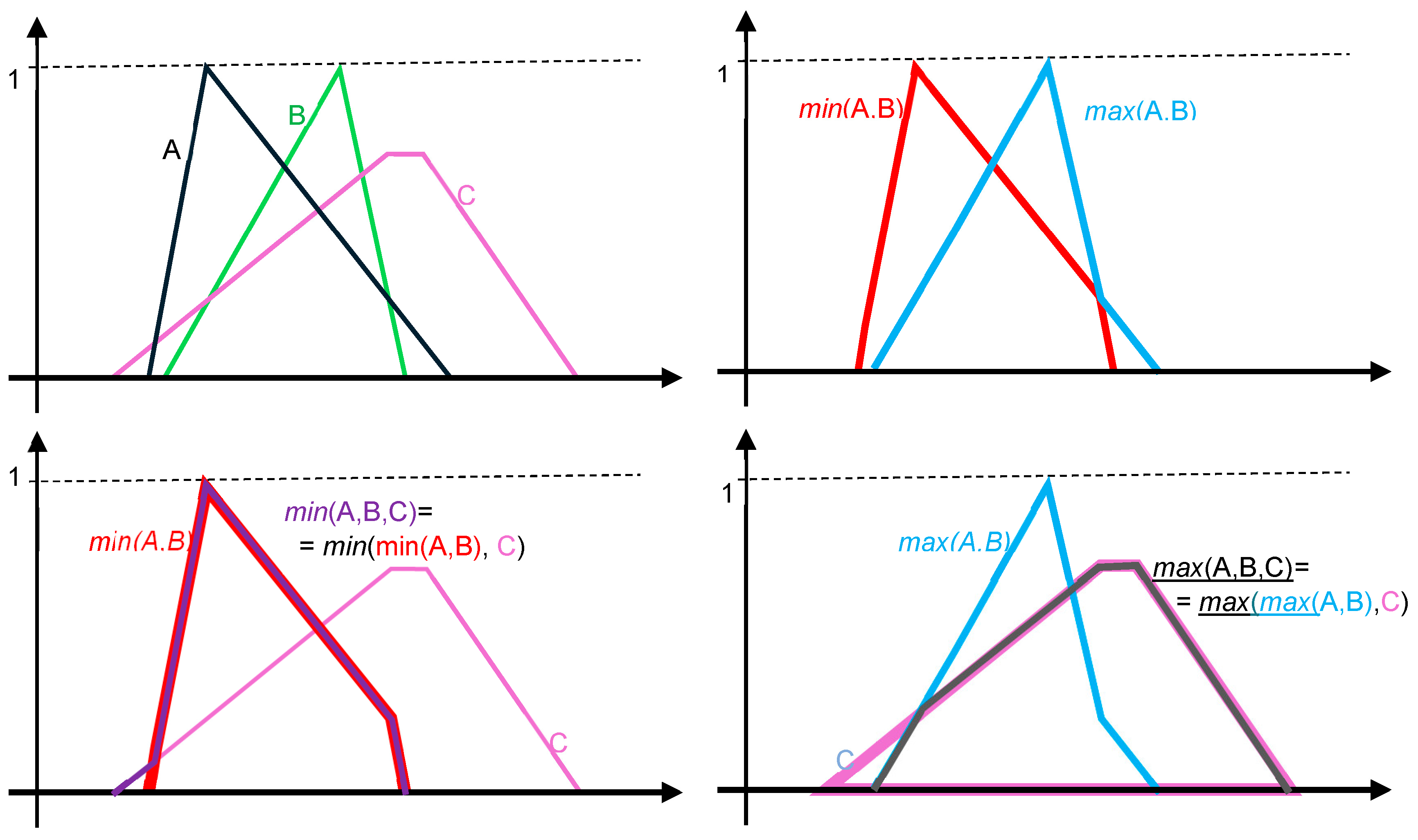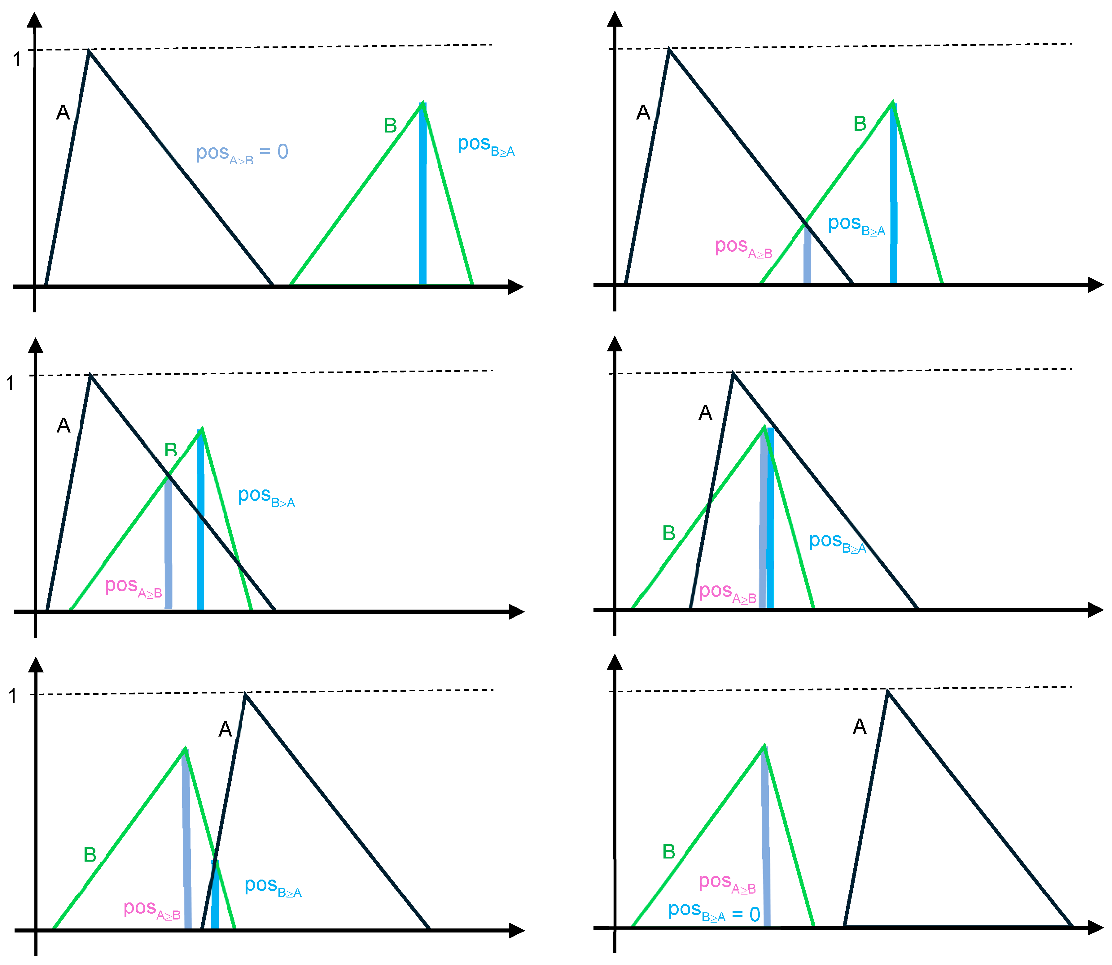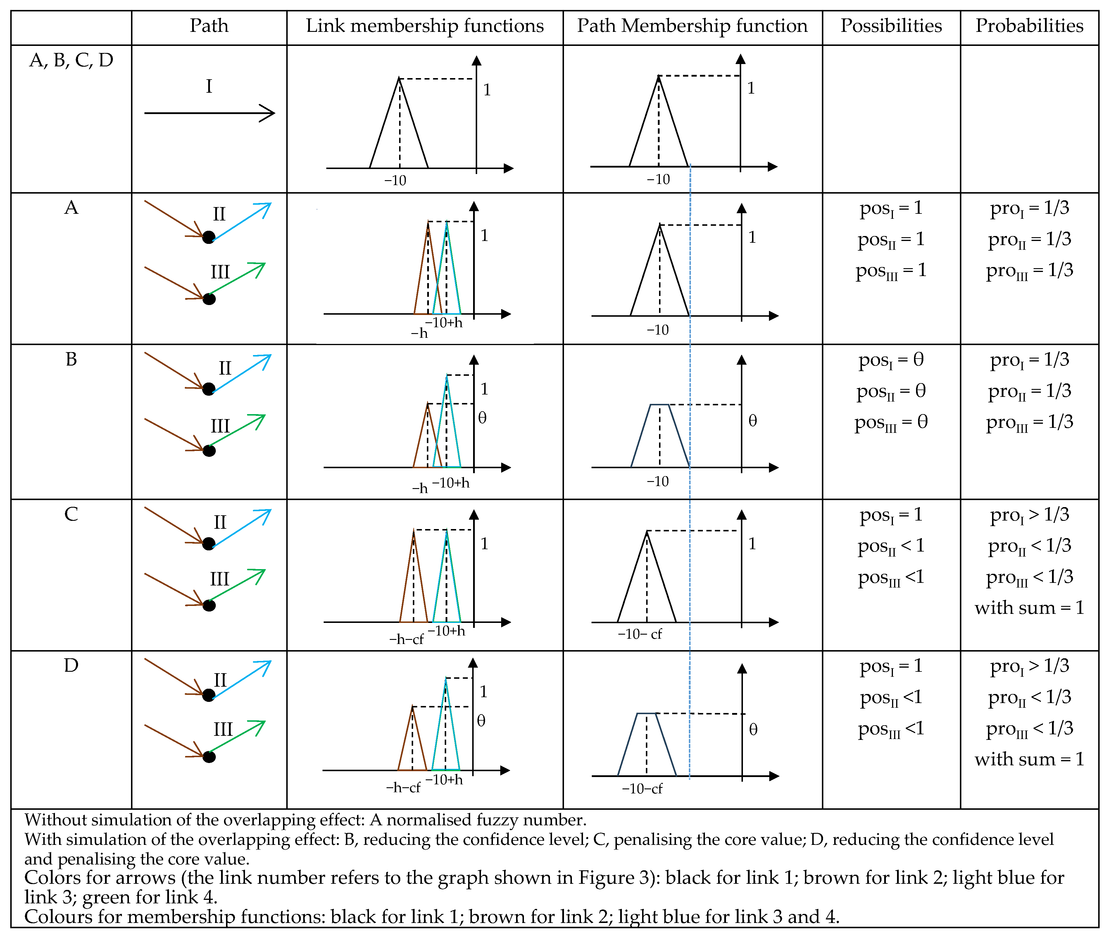 For the common link 2, there are four cases (named A, B, C, D) for which the membership function is triangular: