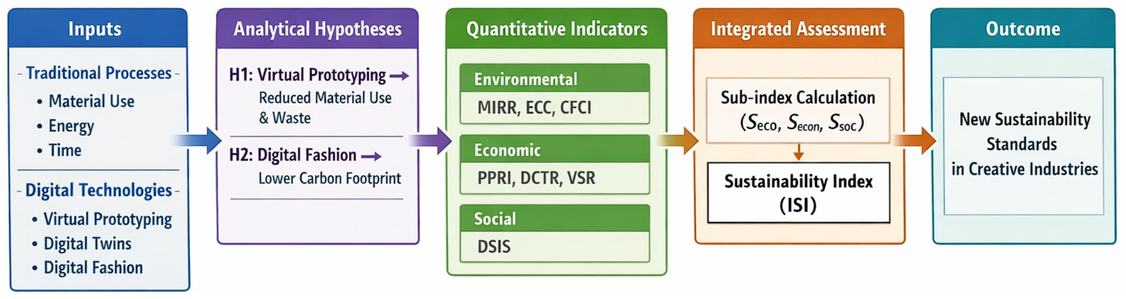 Hypothesis 2 (H2). The use of digital fashion and virtual product practices contributes to reducing the aggregate environmental footprint of the creative industries through the partial substitution of physical production.