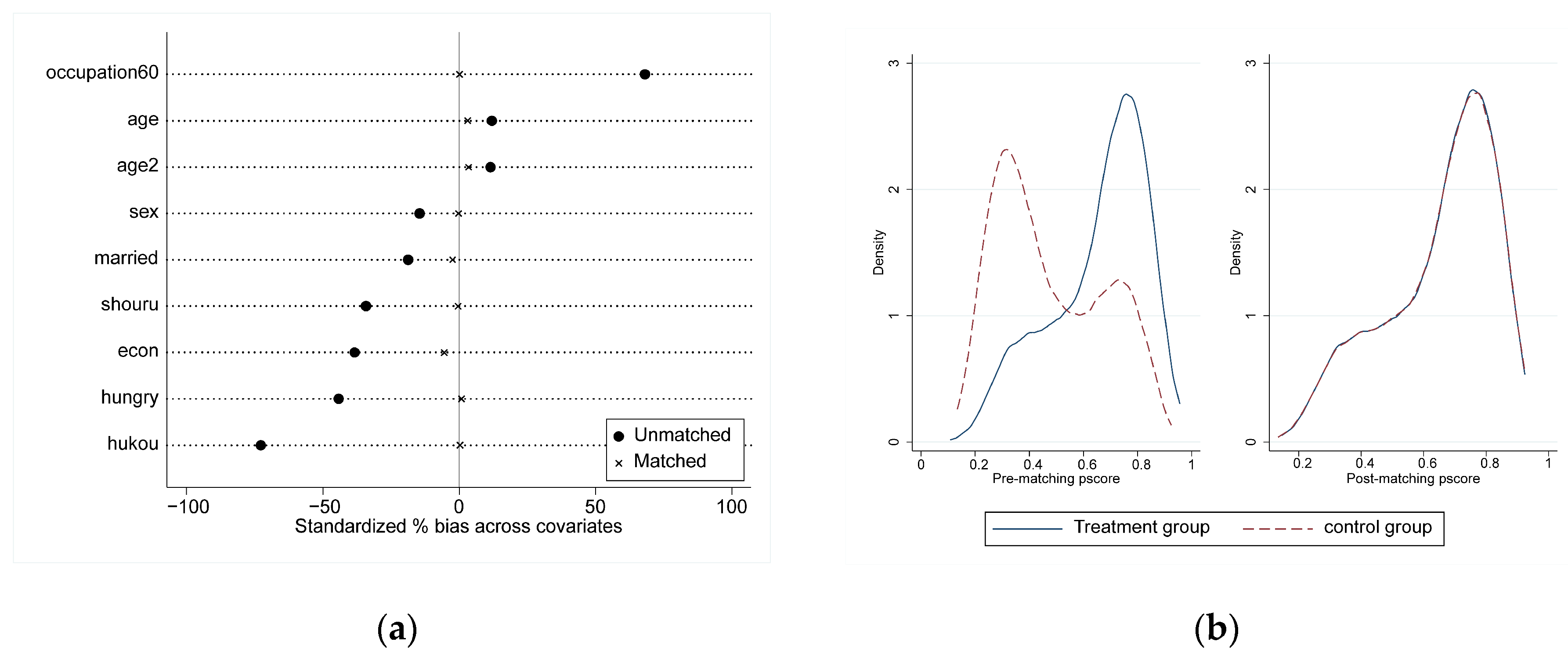| Matching Methods | k-Nearest Neighbors Matching (n = 5) | Radius Matching | Nearest Neighbors Matching with Caliper | Kernel Matching |