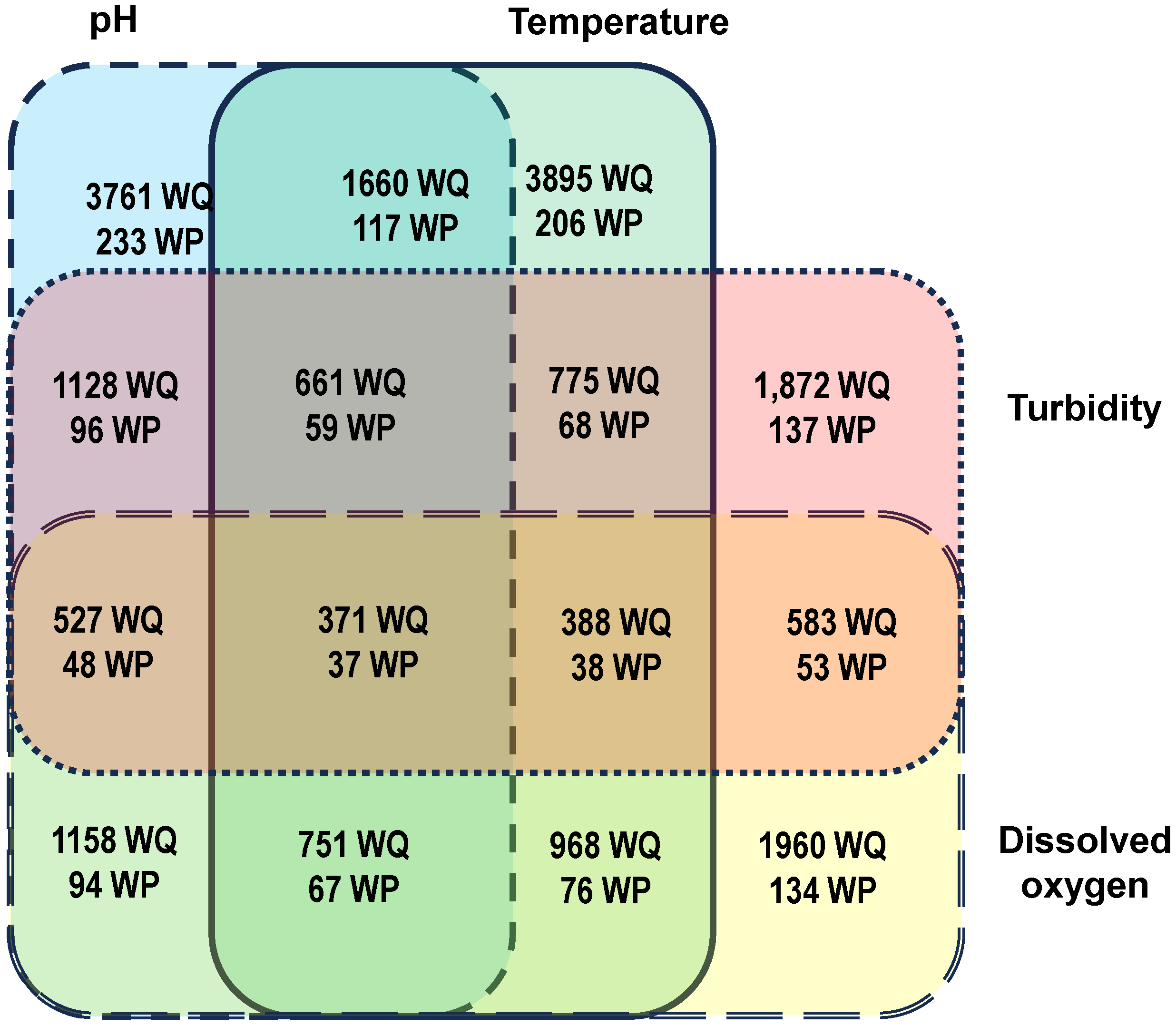 - DISSOLVED OXYGEN—“dissolved oxygen” OR “water oxygen content” OR “oxygen in water” OR “liquid phase oxygen” OR “dissolved O2” OR “aqueous oxygen” OR “aquatic oxygen level*”