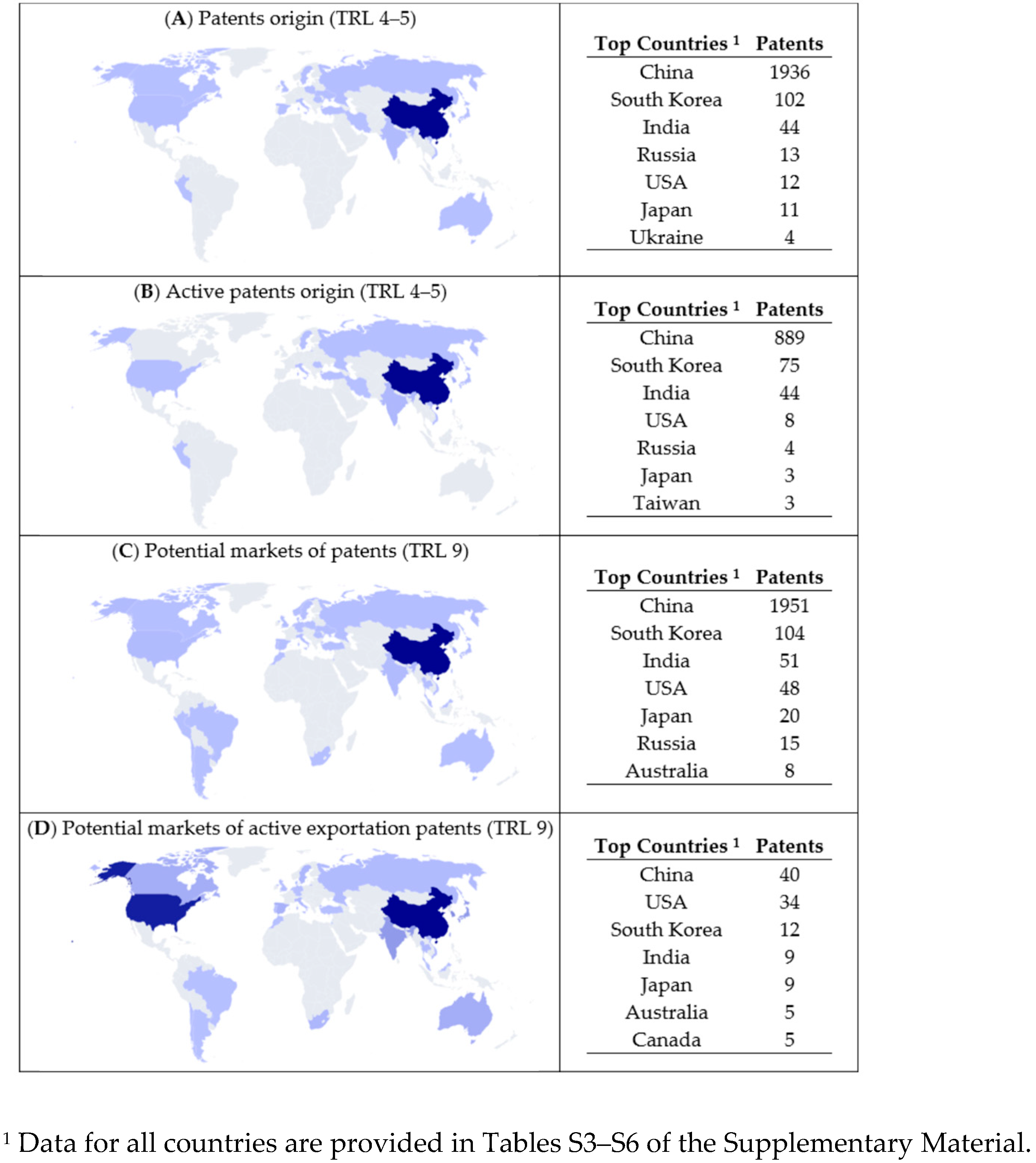 3.3. Global Distribution of Patent Origins and Patent Potential Markets
