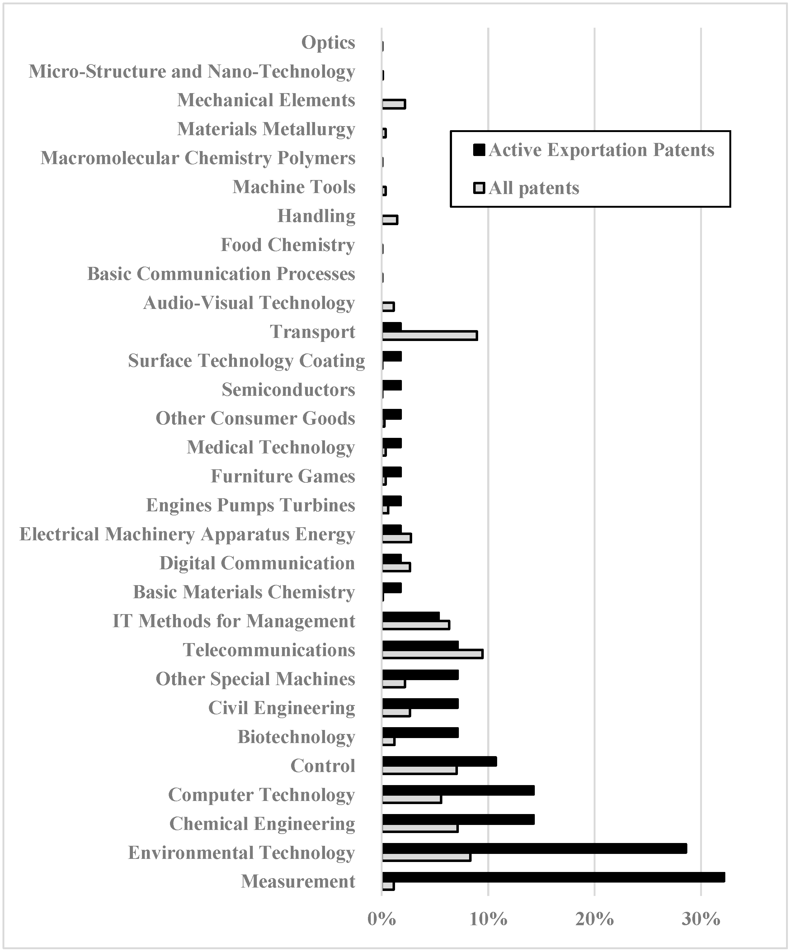 - 69 export-oriented patents, defined as those filed in countries other than their country of origin, identified by a number of basic patent correspondents greater than one; and