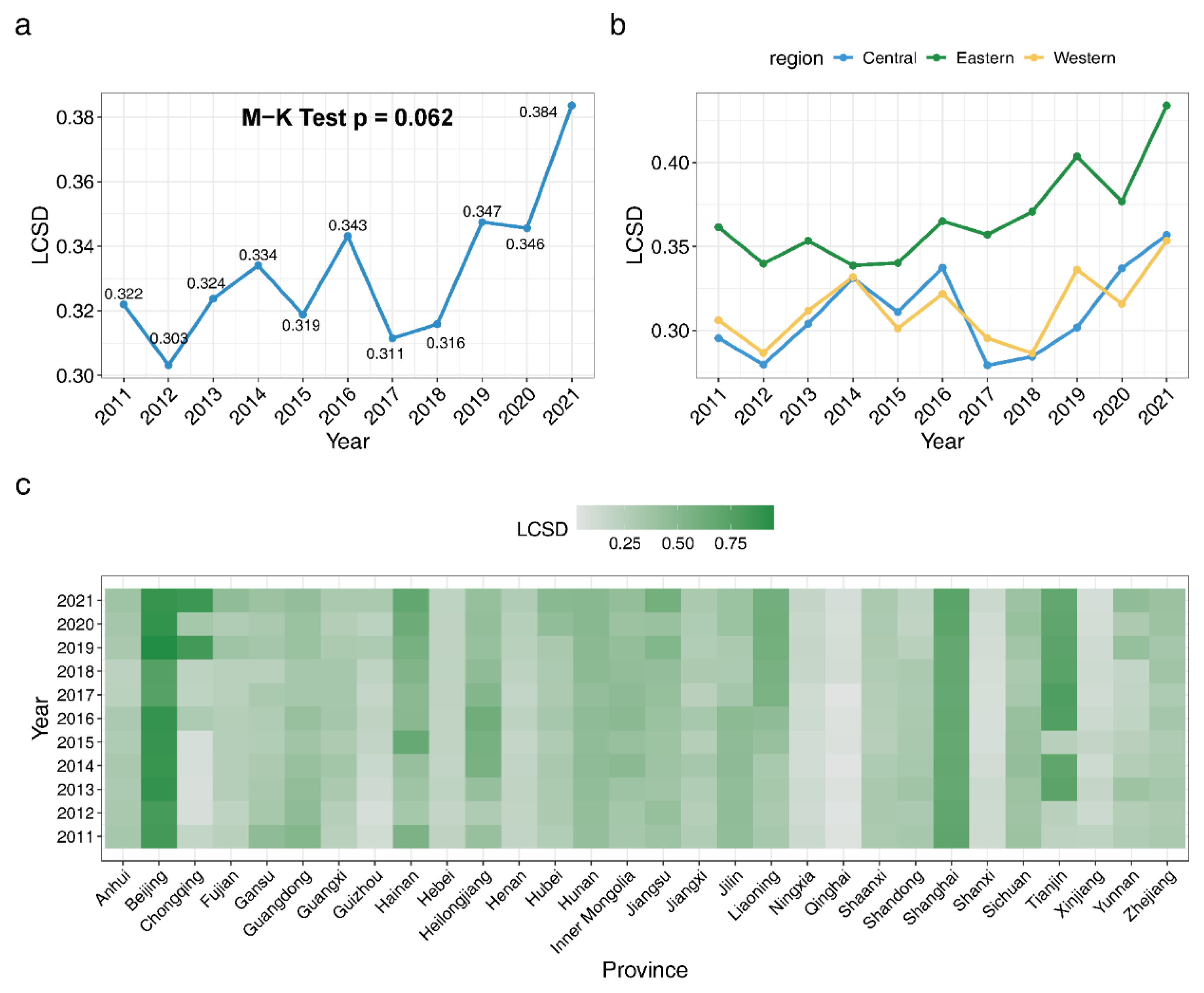 - What are the spatiotemporal evolution patterns of LCSD across Chinese cities during 2011–2021?