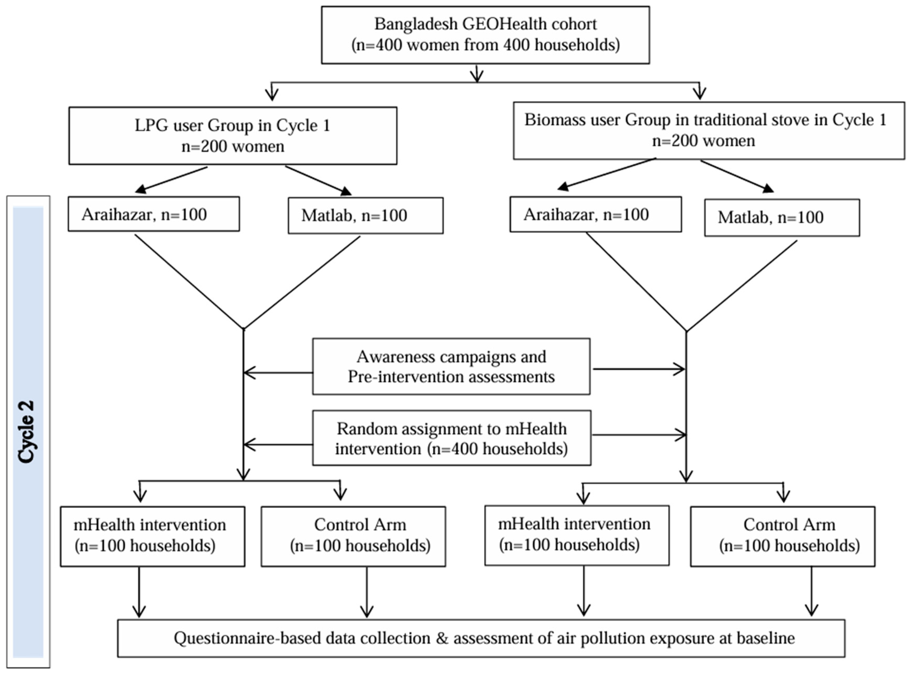 - Raqib, R.; Akhtar, E.; Ahsanul Haq, M.; Ahmed, S.; Haque, F.; Chowdhury, M.A.H.; Shahriar, M.H.; Begum, B.A.; Eunus, M.; Sarwar, G.; et al. Reduction of household air pollution through clean fuel intervention and recovery of cellular immune balance. Environ. Int. 2023, 179, 108137. [Google Scholar] [CrossRef]