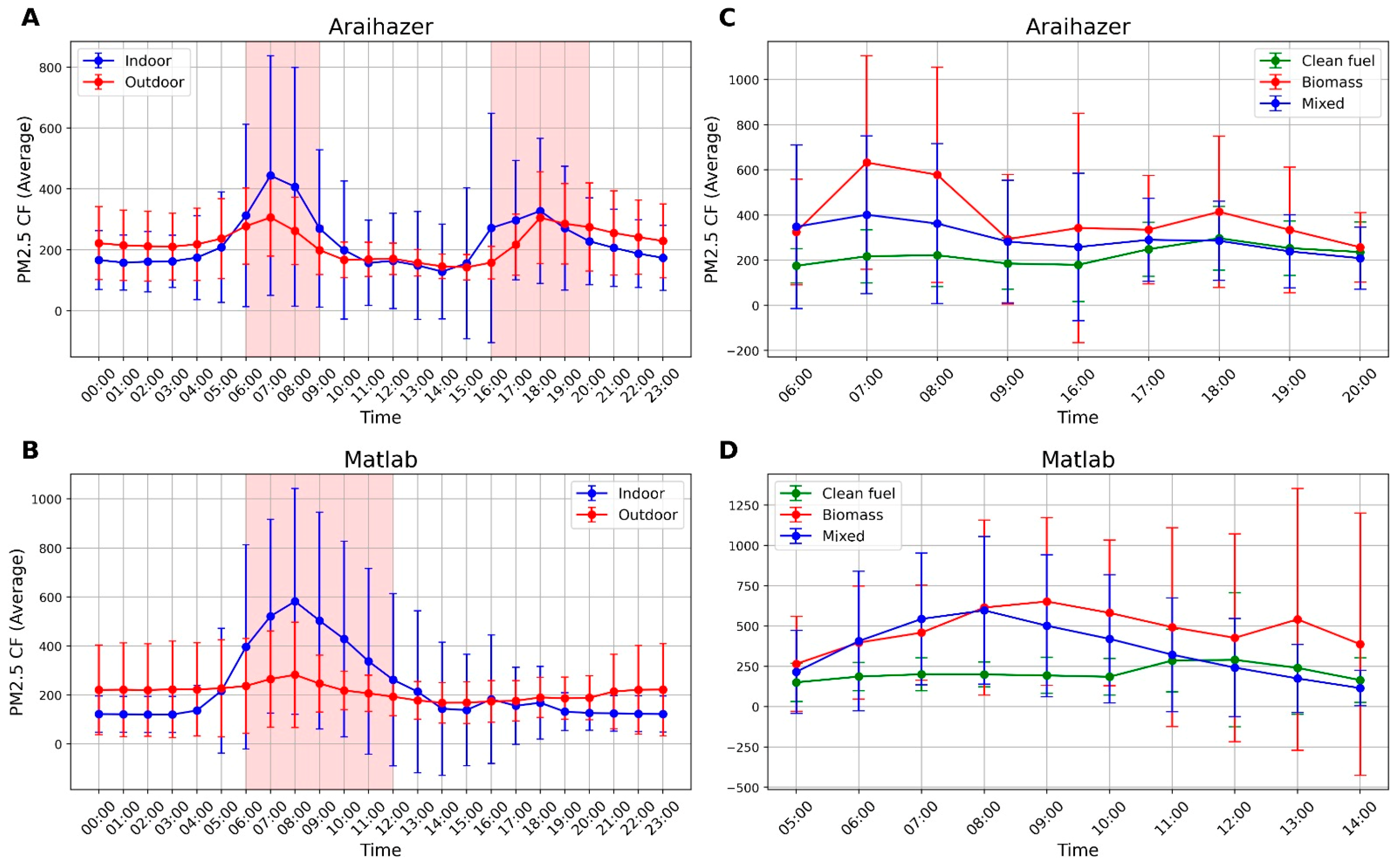 - Campbell, D.A.; Johnson, M.; Piedrahita, R.; Pillarisetti, A.; Waller, L.A.; Kearns, K.A.; Kremer, J.; Mollinedo, E.; Sarnat, J.A.; Clark, M.L.; et al. Factors Determining Black Carbon Exposures among Pregnant Women Enrolled in the HAPIN Trial. Environ. Sci. Technol. 2024, 58, 10162–10174. [Google Scholar] [CrossRef]
