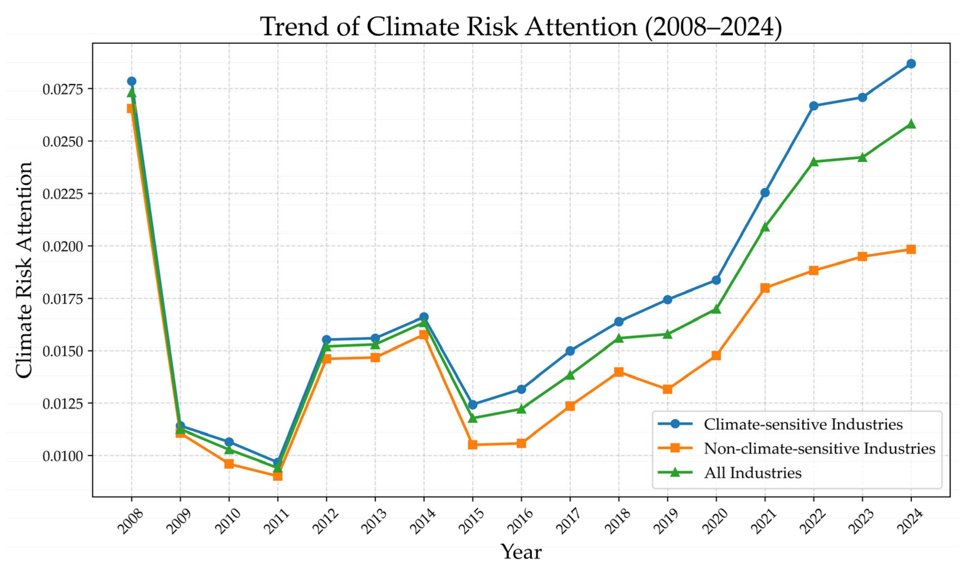 | Climate-Sensitive Industries | Non-Climate-Sensitive Industries | |
