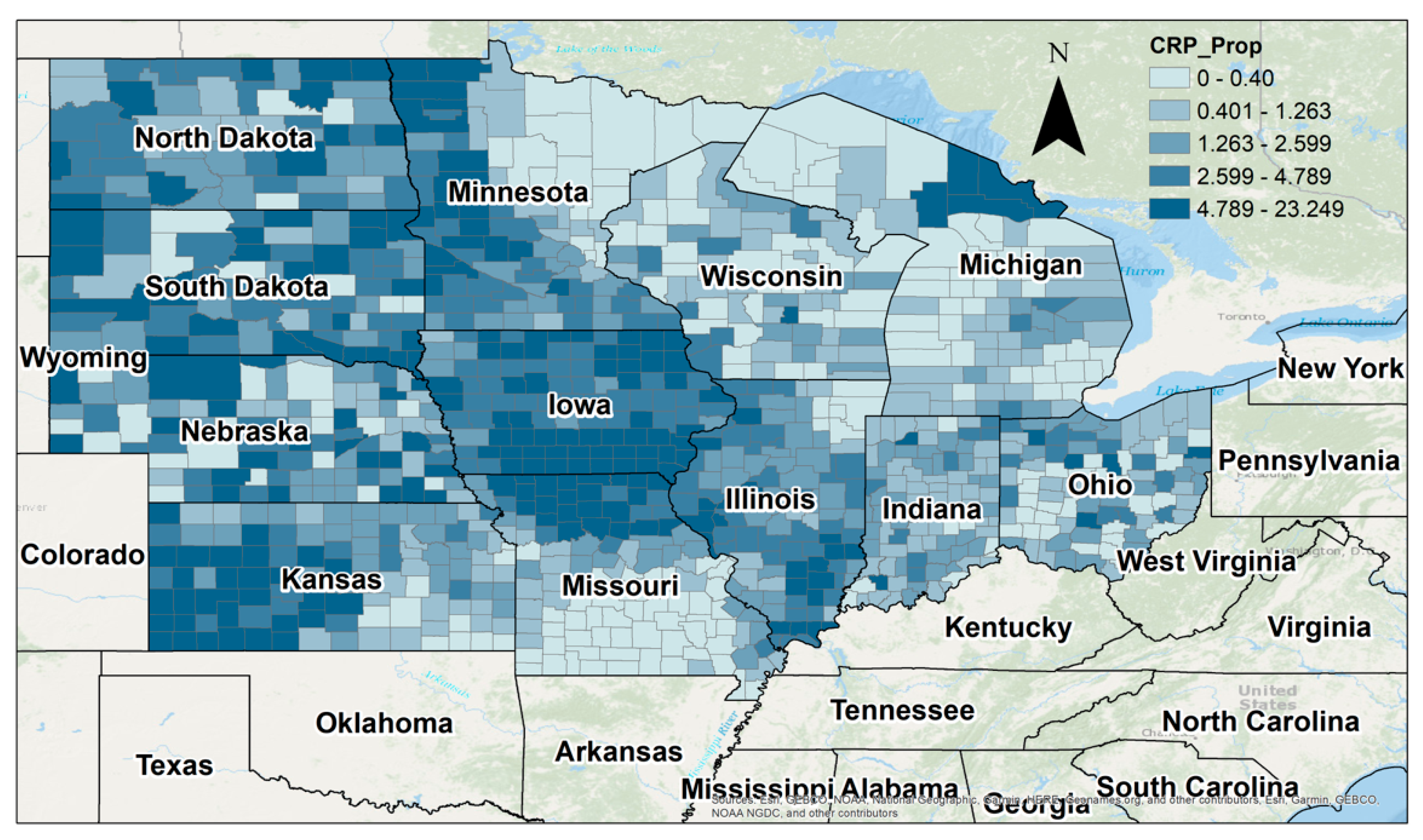 10]. However, even among the Midwestern states and counties, which might appear more homogeneous than other US regions, there are substantial differences in their participation in the CRP, underscoring the need to demystify these inconsistencies [
