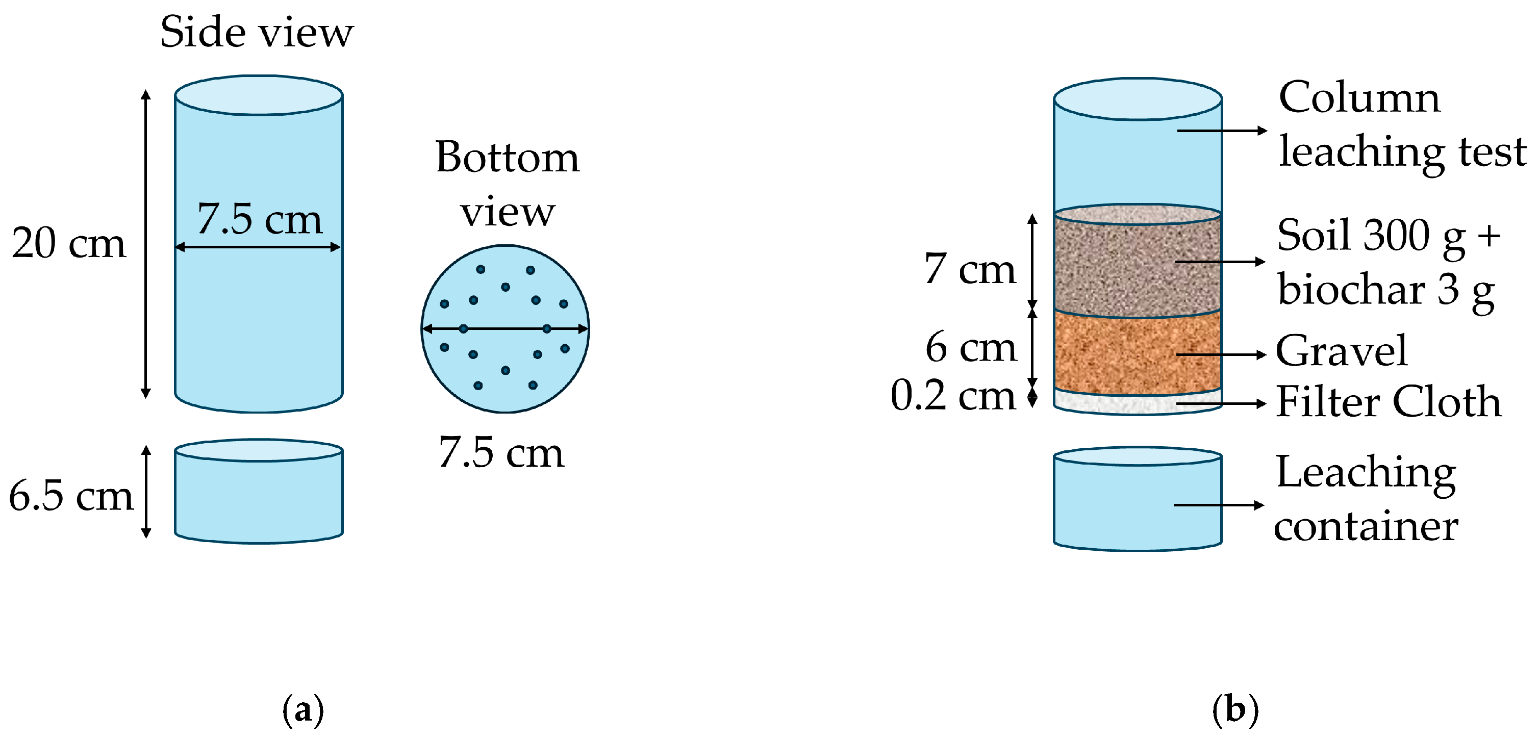 - Gunal, E. Biochar-mediated changes in nutrient distribution and leaching patterns: Insights from a soil column study. PeerJ 2025, 13, e18823. [Google Scholar] [CrossRef]