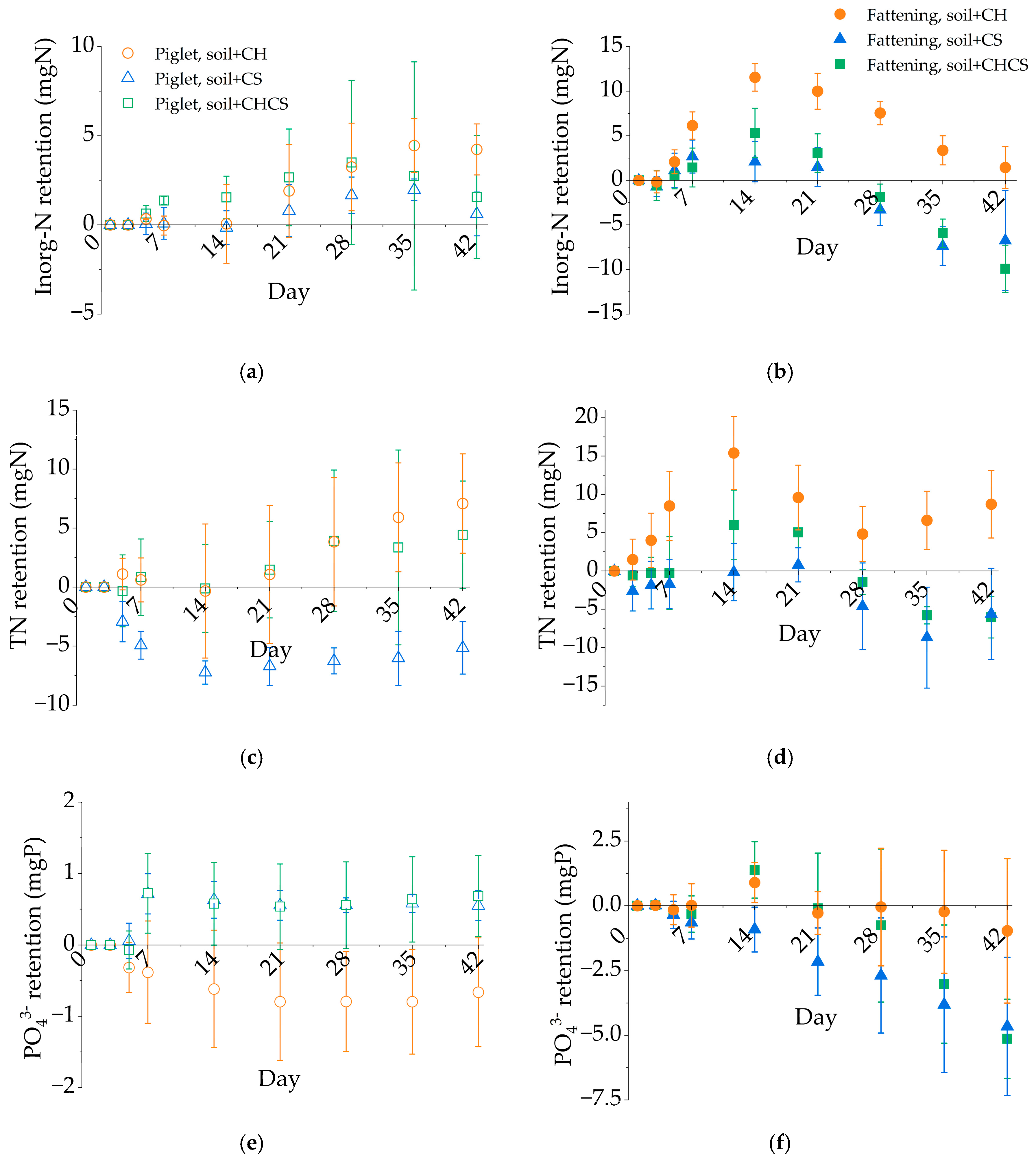 3.4. Effect of Rainfall Rate on Nutrient Retention