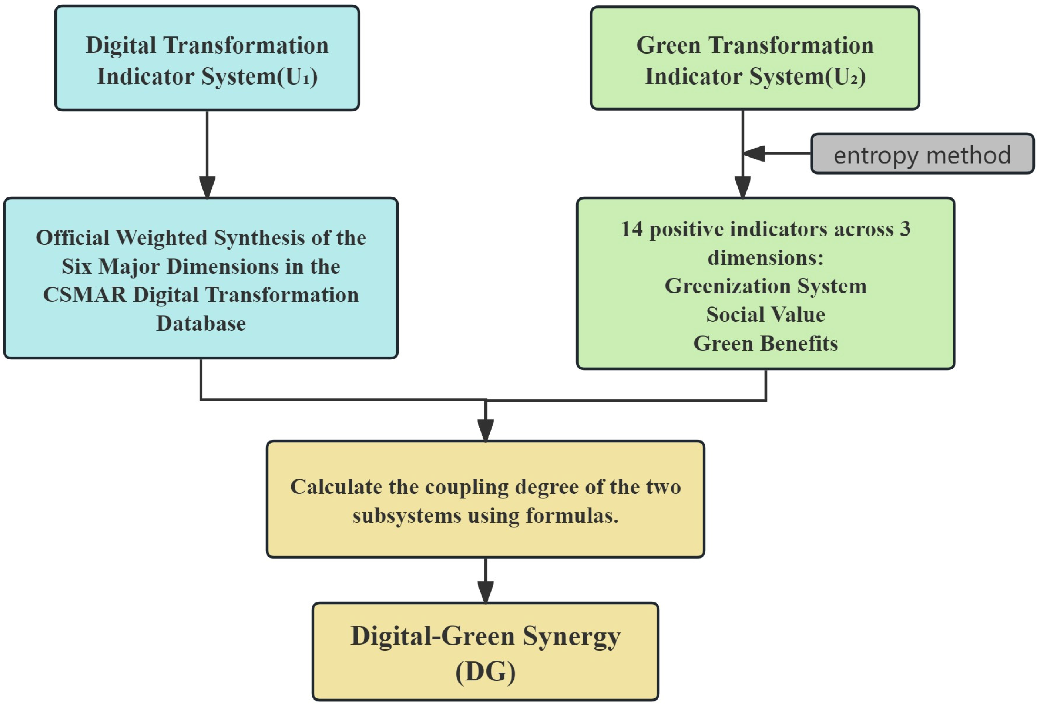 - Li, H.Y.; Liu, Q.Y.; Luo, Z.H.; Zheng, H.R. Measurement and Spatiotemporal Evolution Analysis of the Coordinated Transformation and Development Level of Enterprise Digitalization and Greening. J. Stat. Inf. 2025, 40, 14–28. [Google Scholar] [CrossRef]
