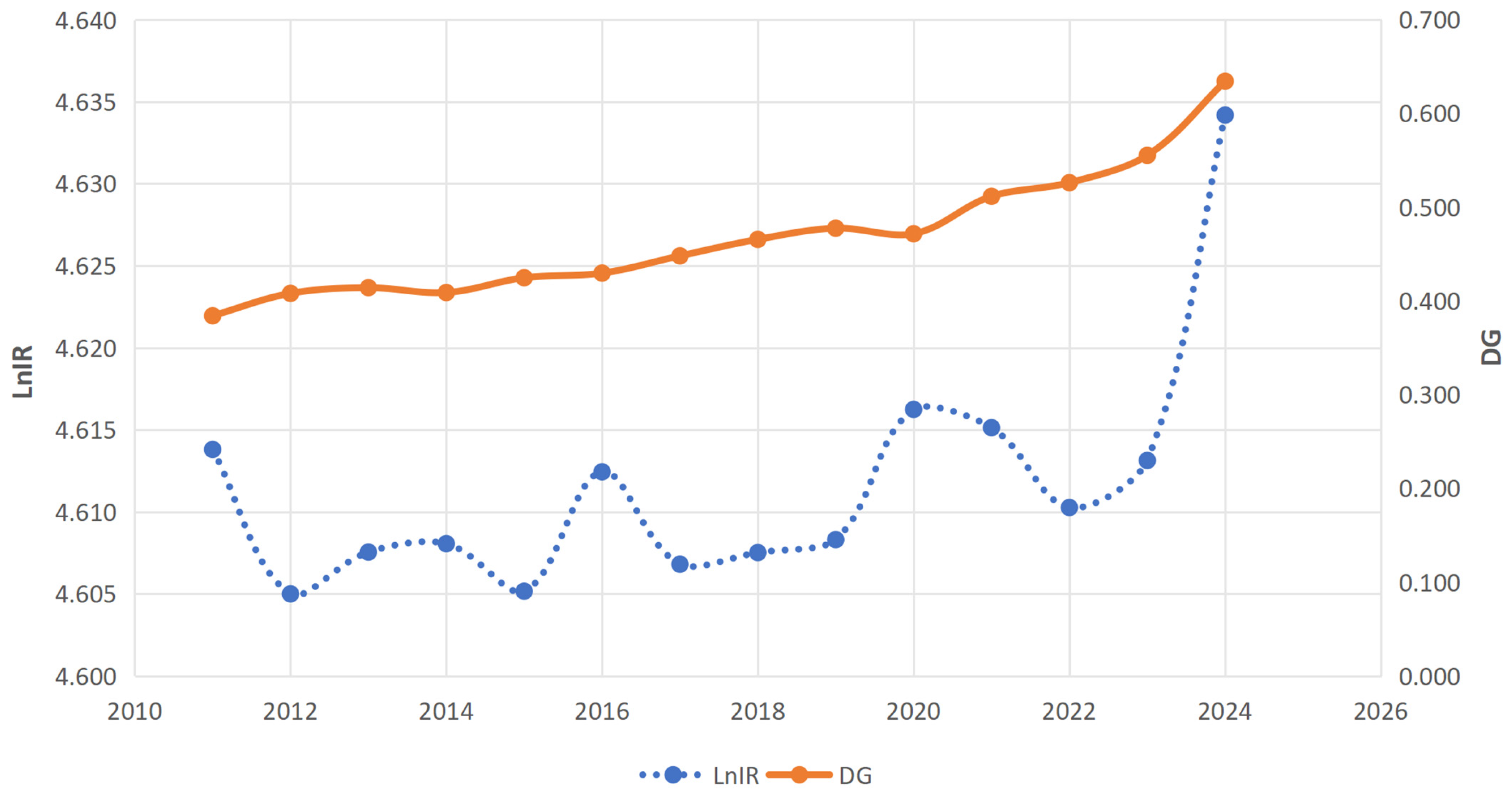 | DG | 0.032 *** | 0.016 ** | 0.033 *** | 0.023 *** |