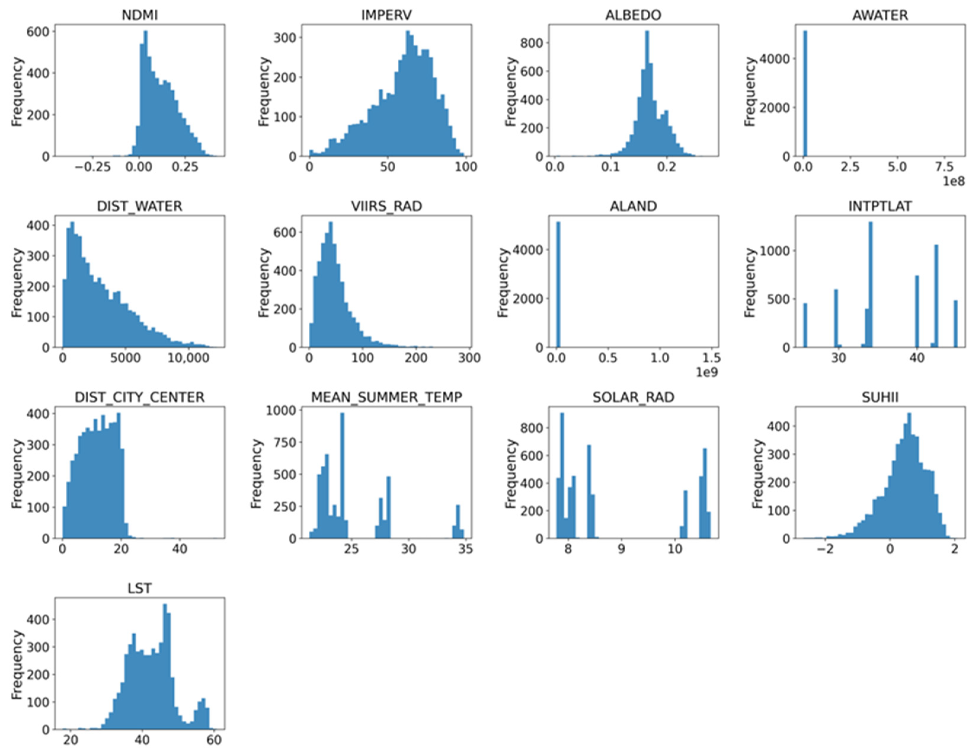 | SUHII | Surface Urban Heat Island Intensity | Unitless | Derived from LST |