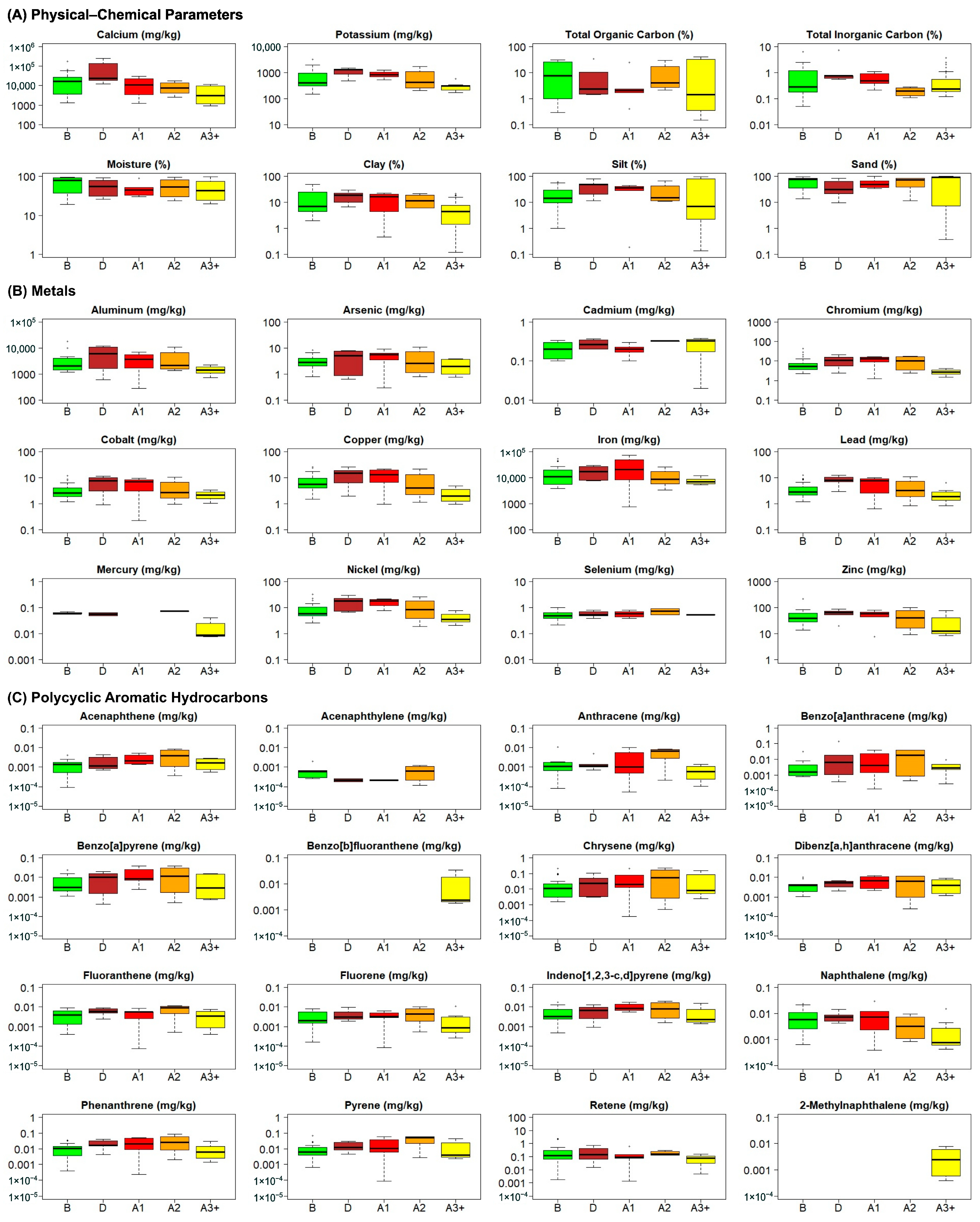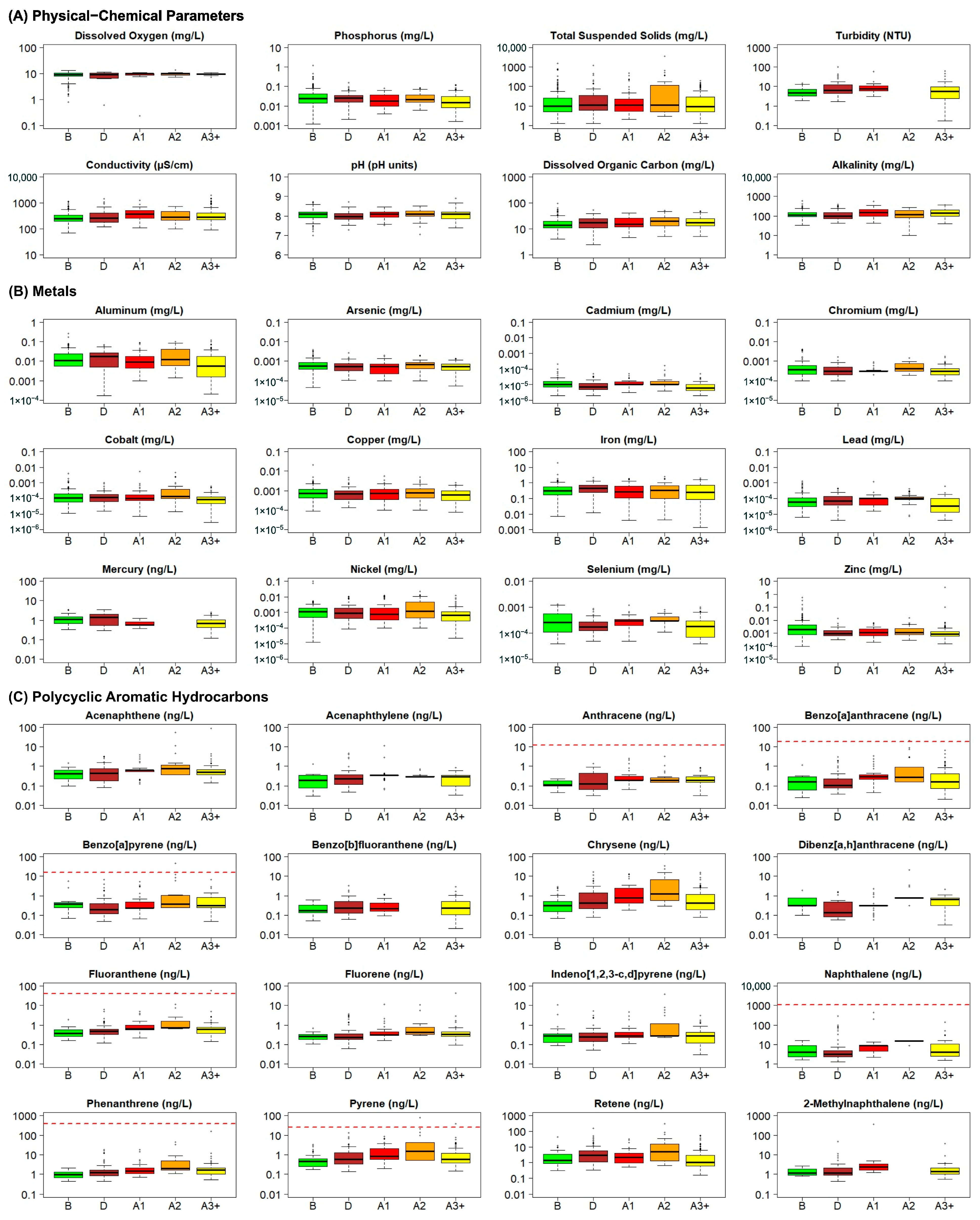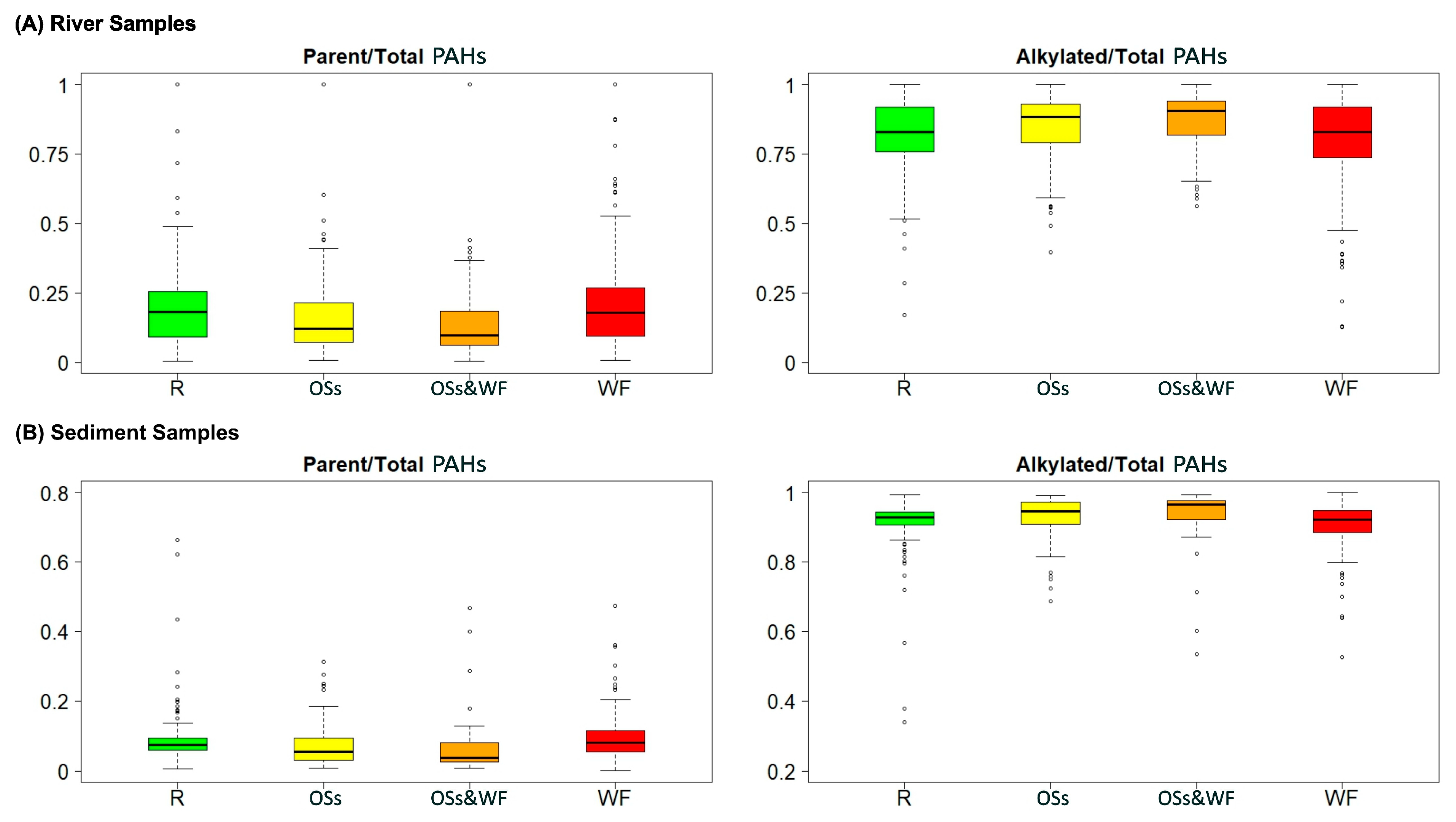 2.6.1. Relative Concentrations of Parent Versus Alkylated PAHs