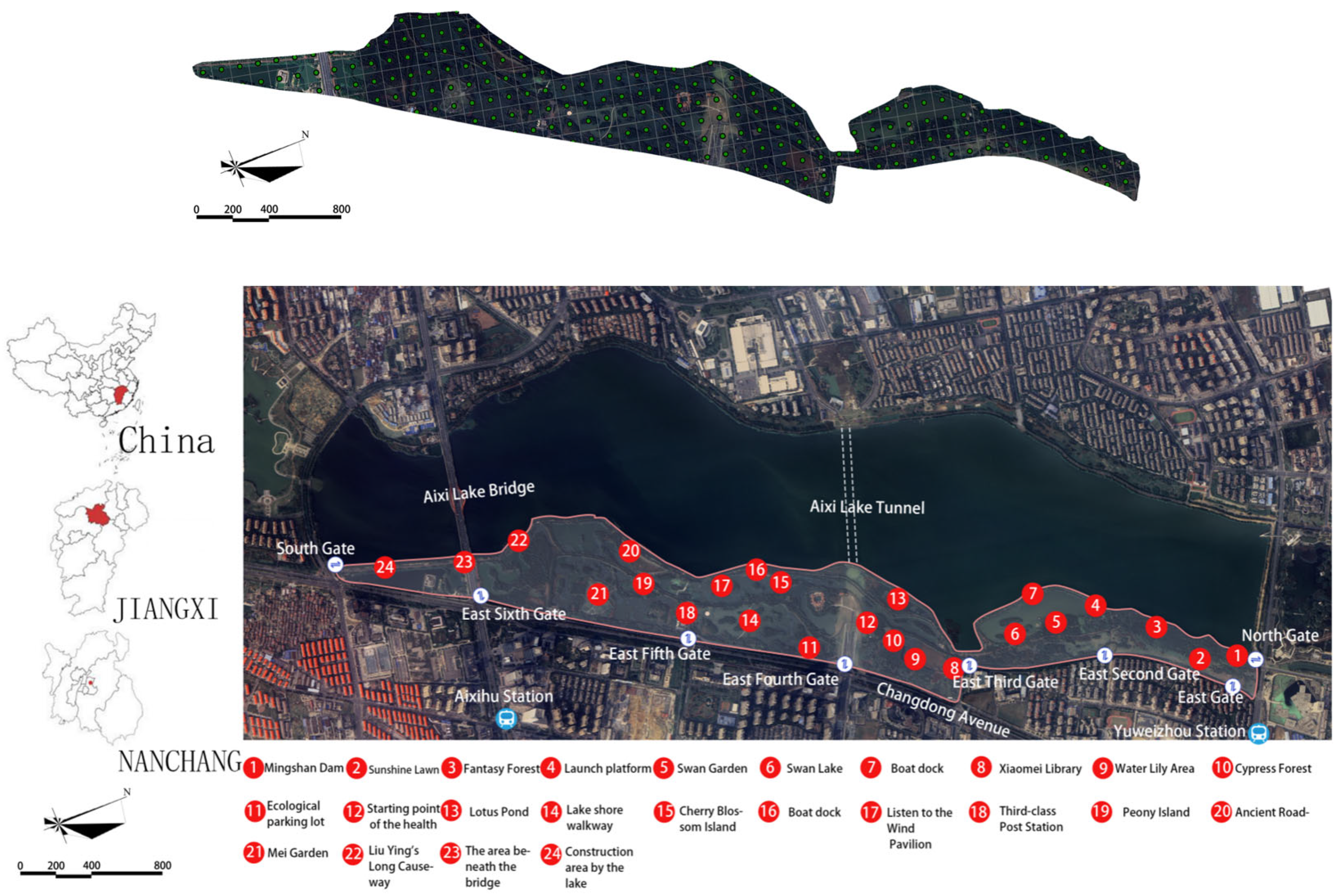 - Fan, J.; Wen, Y. Landscape design of waterfront bird habitat in Aixi Lake, Nanchang. J. Hunan Agric. Univ. (Soc. Sci.) 2007, 8, 64–67. (In Chinese) [Google Scholar] [CrossRef]