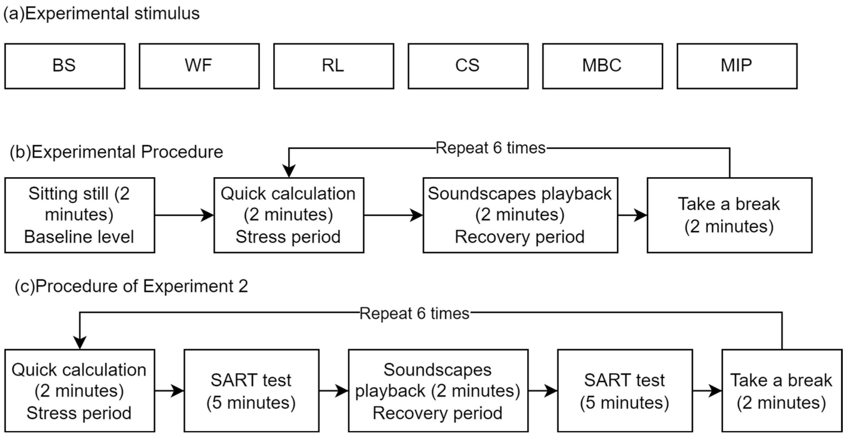 - Deng, L.; Luo, H.; Ma, J.; Huang, Z.; Sun, L.-X.; Jiang, M.-Y.; Zhu, C.-Y.; Li, X. Effects of integration between visual stimuli and auditory stimuli on restorative potential and aesthetic preference in urban green spaces. Urban For. Urban Green. 2020, 53, 126702. [Google Scholar] [CrossRef]