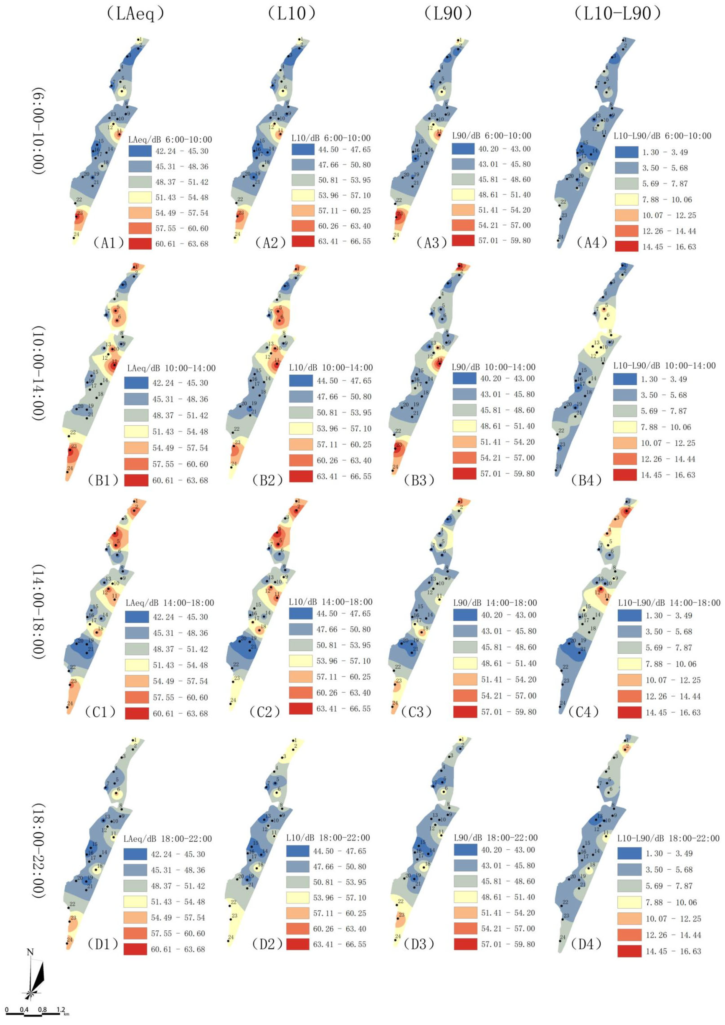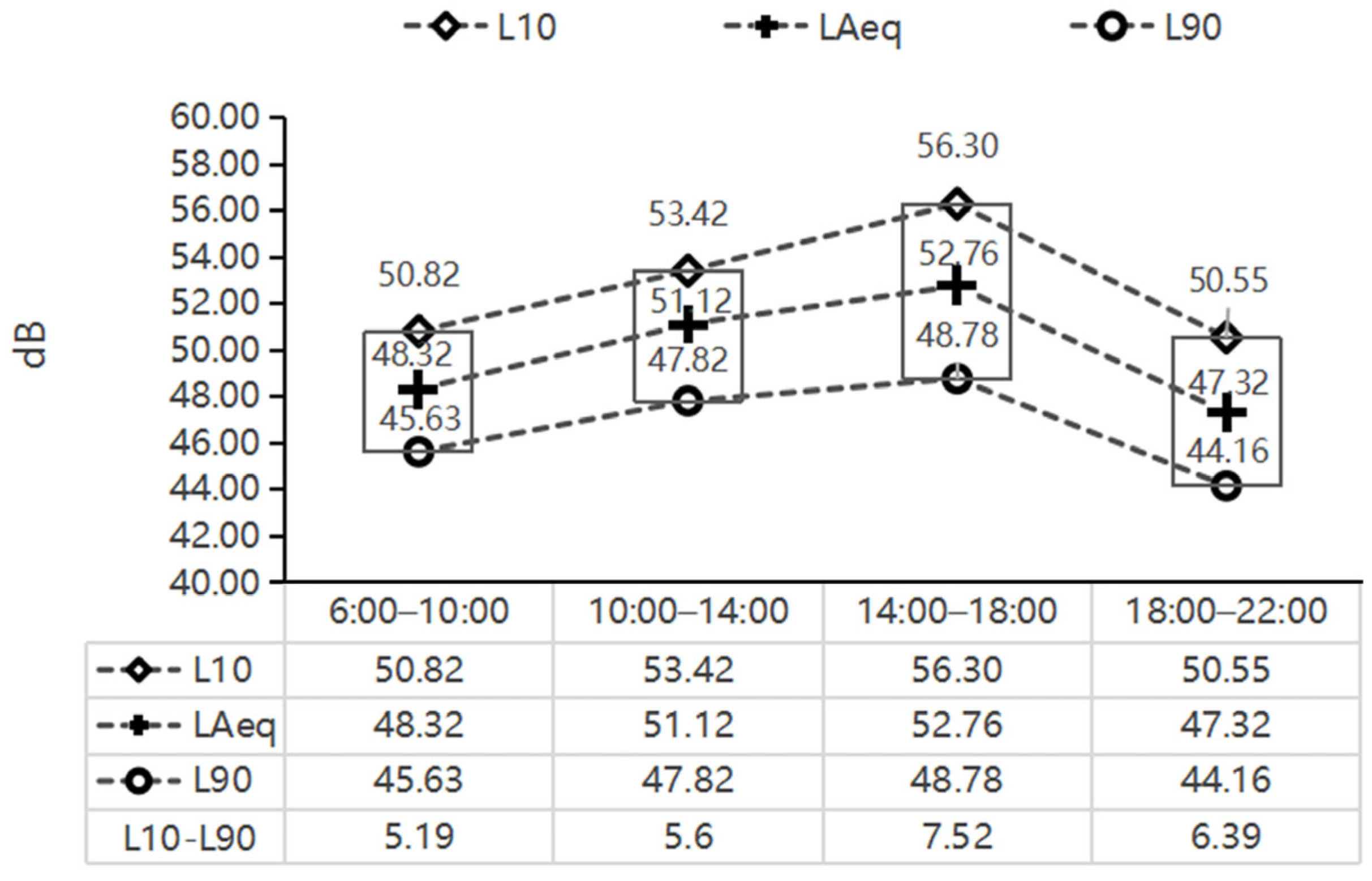 3.1.1. Sound Level Spatiotemporal Characteristics