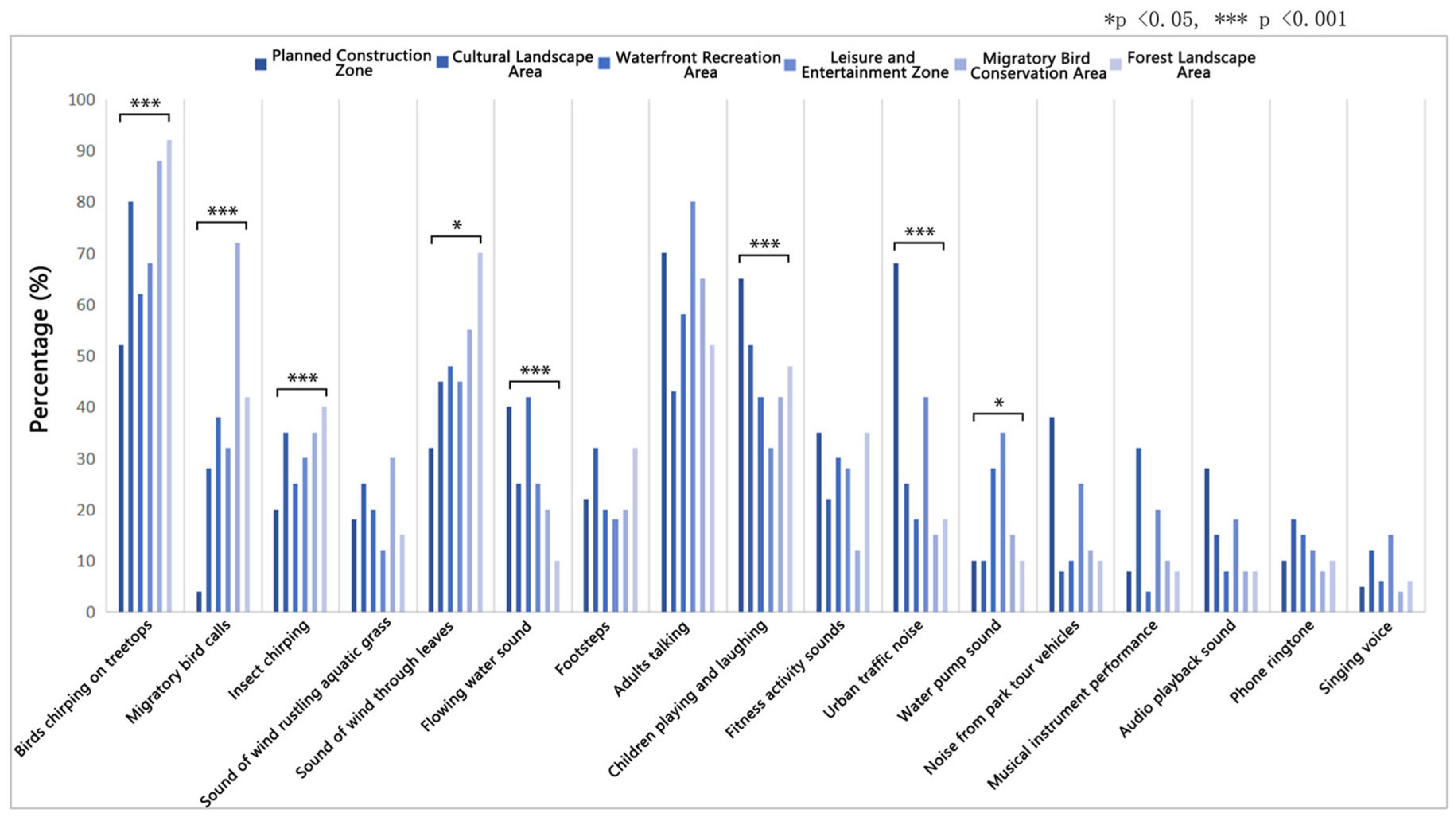 - Liu, J.; Guo, X.; Hong, X.; Zhang, X. The Impact of Individual Factors on Perceived Soundscape Restorativeness in Urban Parks. Chin. Landsc. Archit. 2022, 38, 40–45. (In Chinese) [Google Scholar]
