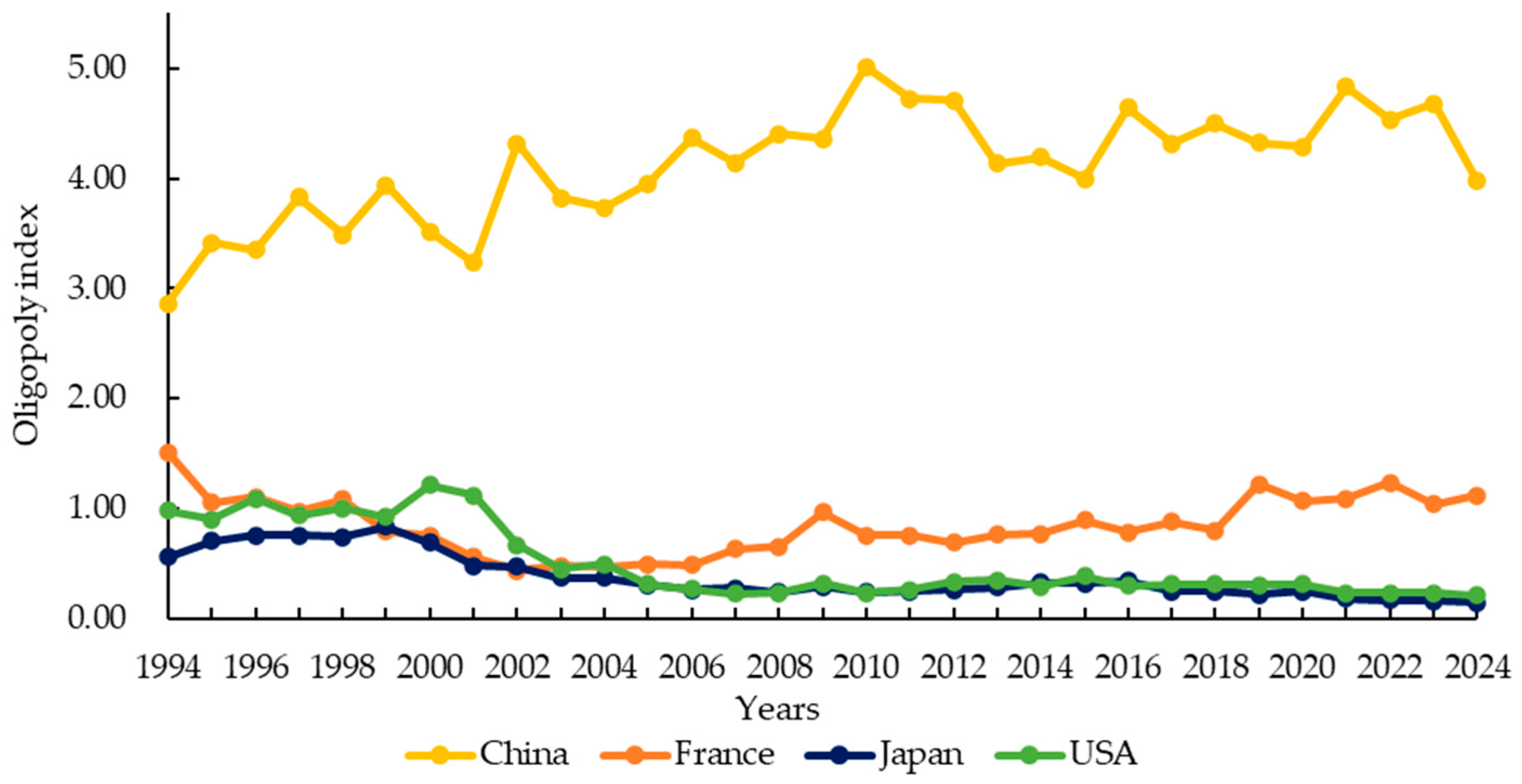 4.3.1. Results of the Export Oligopoly Index Analysis