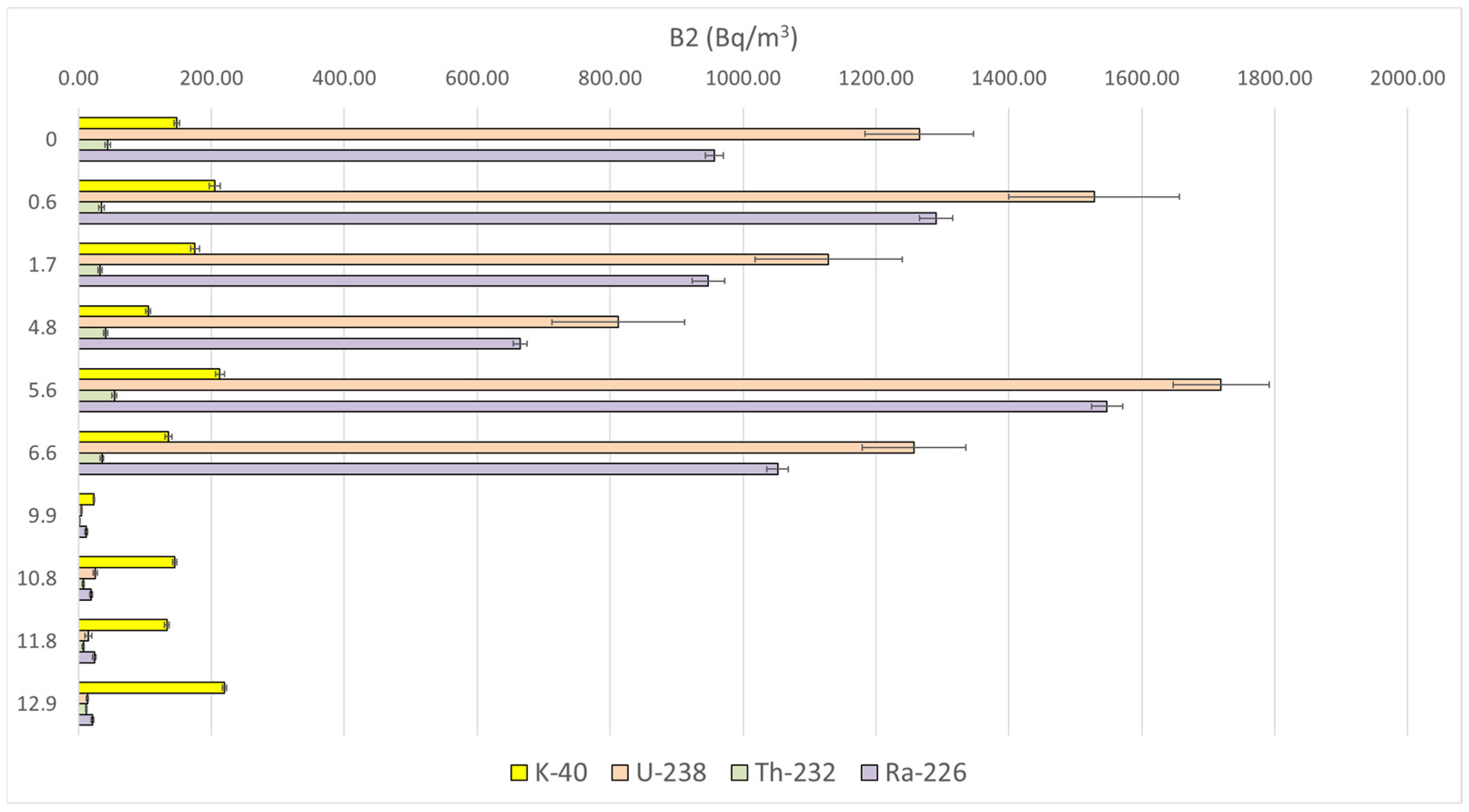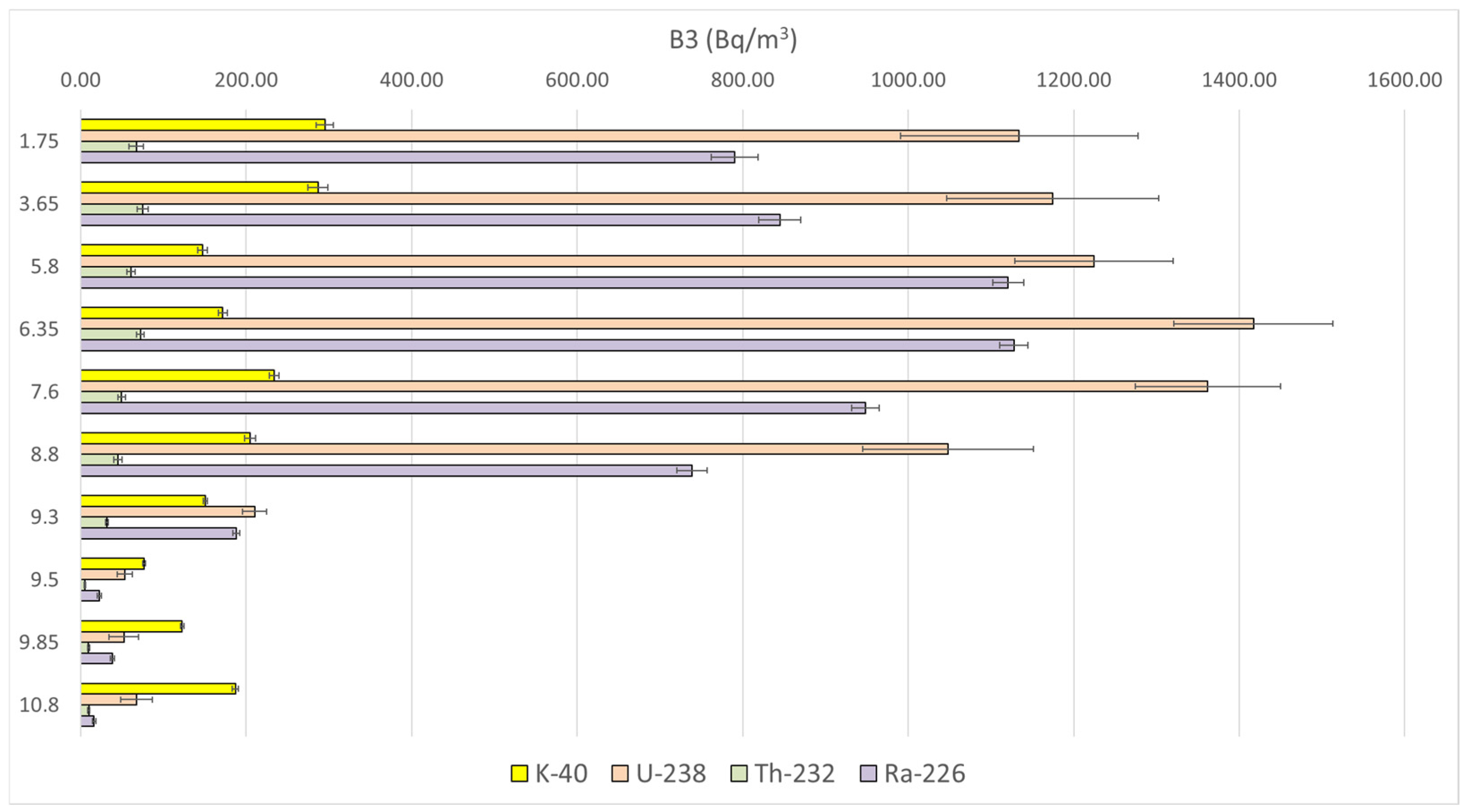 | Borehole Sample Label | Sampling Depth (m) | K-40 | U-238 | Th-232 | Ra-226 |