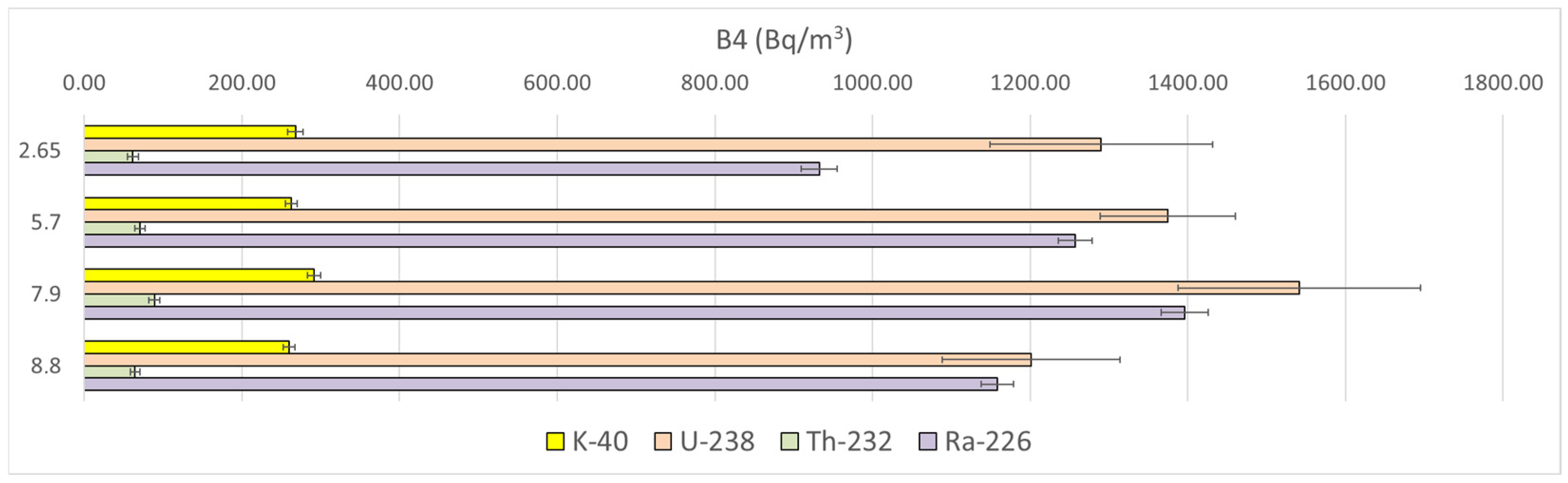3.3. In Situ Gamma Spectrometry Measurements