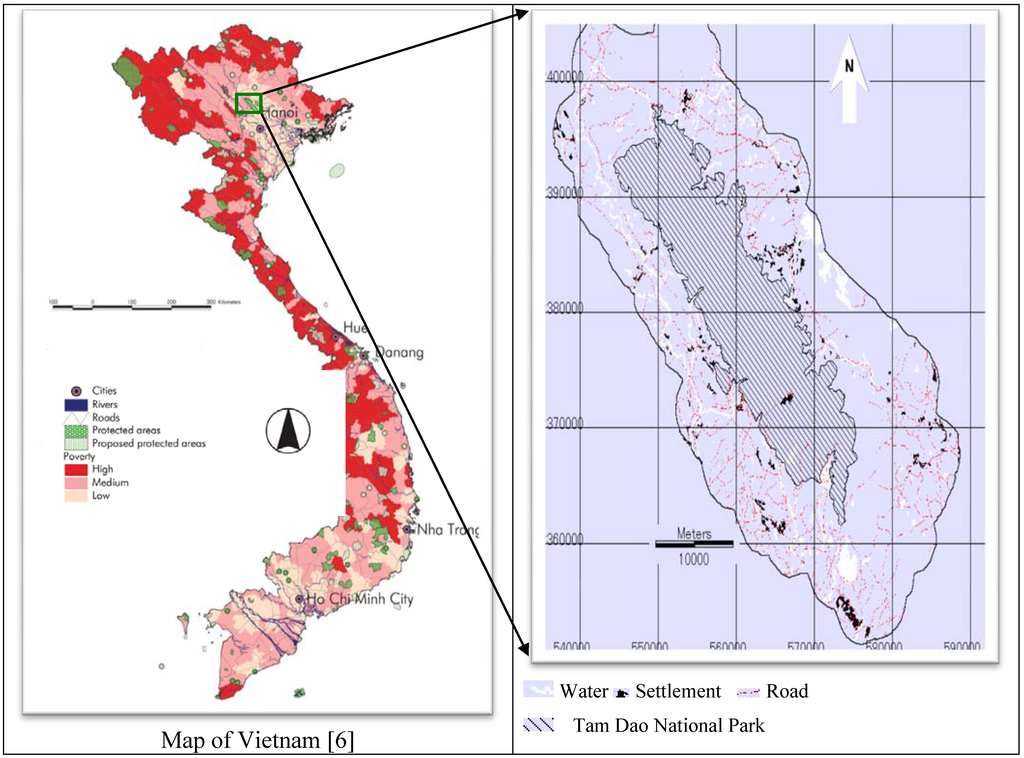- Tam Dao National Park and Buffer Zone Management Project (TDMP). Rural Household Economics Baseline Survey 2005; Centre of Services, Eco-tourism & Environmental Education: Tam Dao, Vienam, 2005. Available online: http://tamdaonp.com.vn/ (accessed on 2 March 2010).