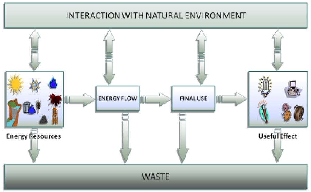 An analysis of a complete energy system (well-to-use analysis), must start from primary resources—considering both the interaction with the environment and any waste products (solid, liquid and gaseous)—to achieve the useful effect [10].