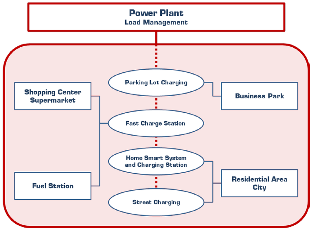 In an optimized power management, the adoption of V2G infrastructure type is desired. An example of its application is shown in Figure 4 in which a charging infrastructure block diagram for electric vehicles is proposed.