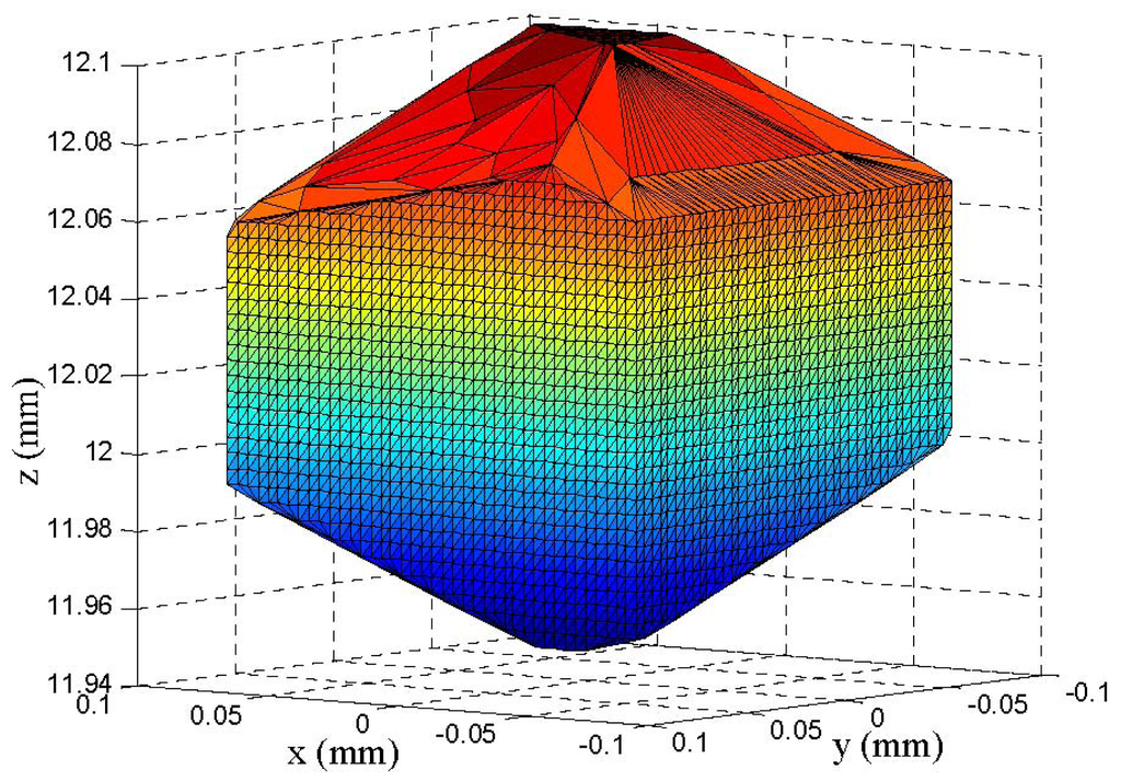 Before optimization, the value of objective function is equal to 5.42×10−4 mm3, with the initial parameters as follows: