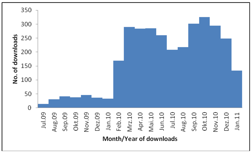 The number of downloads for each country's paper ranges from n = 2 (Czech Republic) to n = 745 (Tanzania; Figure 1). In addition to Tanzania, at least seven other countries have the highest frequency of downloads (>100): France (n = 590), Iran (n = 208), Israel (n = 531), The Netherlands (n = 462), People's Republic of China (n = 461), Peru (n = 459) and The United Kingdom (n = 137; Figure 1). Statistics for the source country of each download request could not be gathered and displayed with the version of AWStats Software used for this site. Thus, it could not be determined where these downloads were being used nor the purpose for downloading the documents.