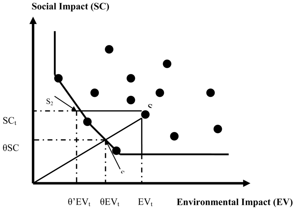 If we want to calculate eco-efficiency indicators (ratio of environmental to economic information) or any other ratios (e.g., material/energy intensity; resource productivity), data envelopment analysis (DEA) method can be used. One of the few eco-efficiency metrics that attempted to integrate both environmental and economic performance was developed by Unilever [75-78], which is known as Overall Business Impact Assessment (OBIA). DEA is a data-driven and based on mathematical programming which can aid to identify which critical factors need to be addressed for improving the performance of decision making units (DMU) towards achieving efficiency [79]. DEA is an operations research/management science based empirical procedure for estimating the relative efficiency of any decision making units (e.g., technologies, suppliers, manufacturers, supply chains) [80-82]. Tyteca [83,84] and Kuosmanen and Kortelainen [85,86] developed different and complex variations of DEA models. The definition of a DMU can vary greatly, as long as the units or agents or systems can be modelled either as inputs or outputs. The inputs and outputs in DEA models may have different units of measurement and they can be under certain assumptions even qualitative [87,88].
