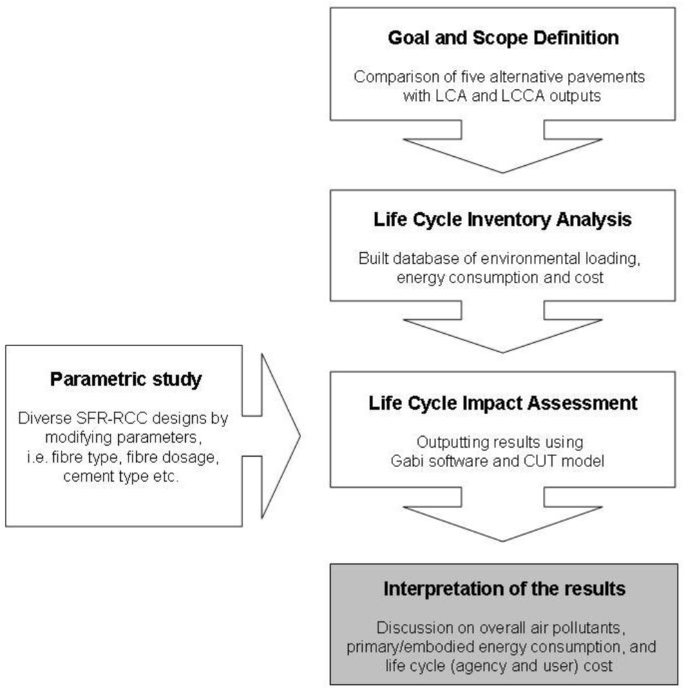 Environmental and economical impact of SFRC pavement construction was estimated by a life cycle methodology. LCA is a cradle-to-grave analysis avoiding the environmental ‘problem shifting’ to another stage in a product's life cycle. LCA perspective can be applied in analysing the origins of issues, comparing variation for improvement purpose, designing new products, and choosing between comparable products [10].