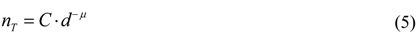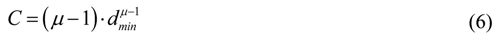 where nT is the number of tourists, d is the average distance of a distance class, C is a constant and µ is the power coefficient. The minimum value dmin is defined by the following relation between C and this minimum value []: