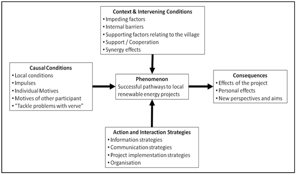 Paradigm model of the results of the interview study of initiators of renewable energy projects (Referring to Strauss and Corbin, 1996, [14]).
