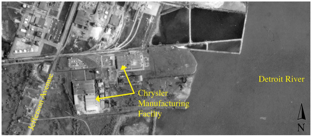 In 1946, Chrysler Corporation applied to the City of Trenton, Michigan for a building permit to construct its first building on what was then 17.8 ha of vacant land and adjacent water (Table 1). Additional buildings were constructed from 1952 through 1973. It was operated by Chrysler Corporation as a manufacturing facility for brake pad adhesives for automobiles, blended oils, paints, sealers, powdered metal parts, asbestos brake pads, and phenolic brake pistons (Figure 2).